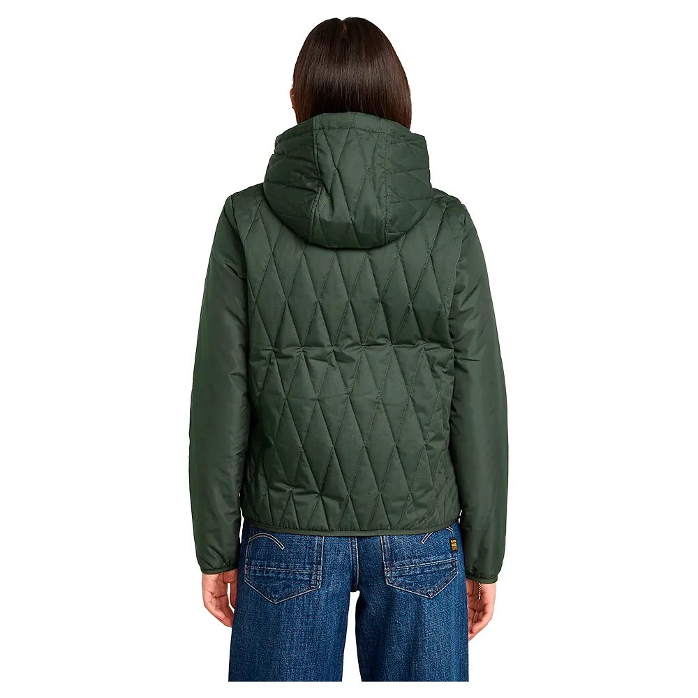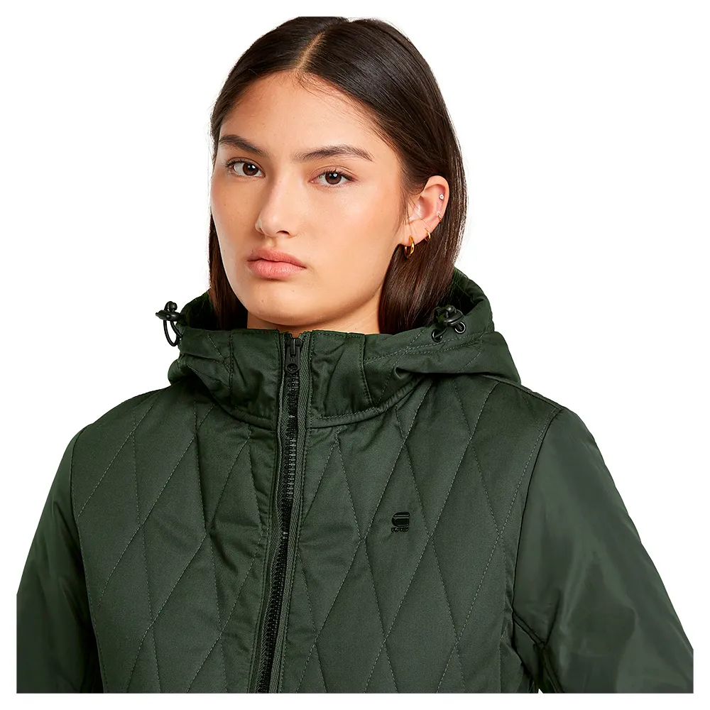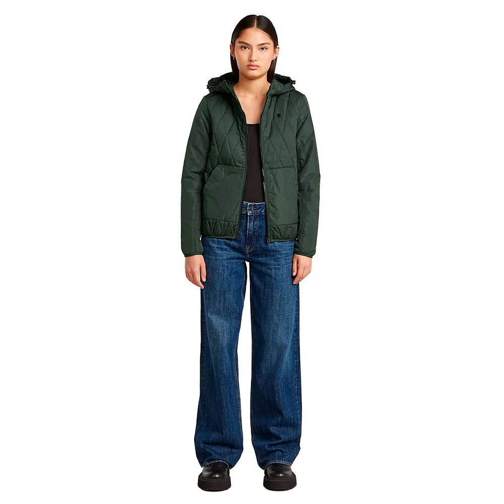 Верхняя рубашка Utility Quilted полностью на подкладке и имеет удобный капюшон со шнурком.
