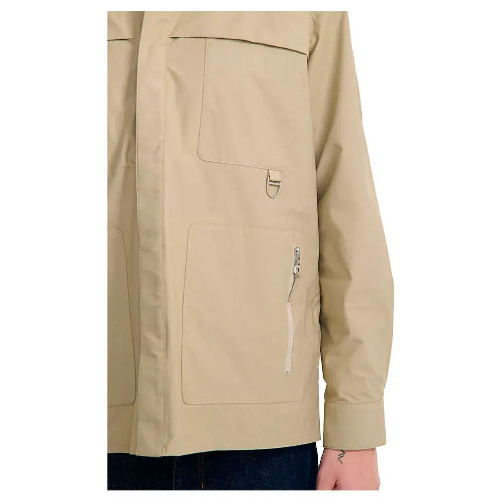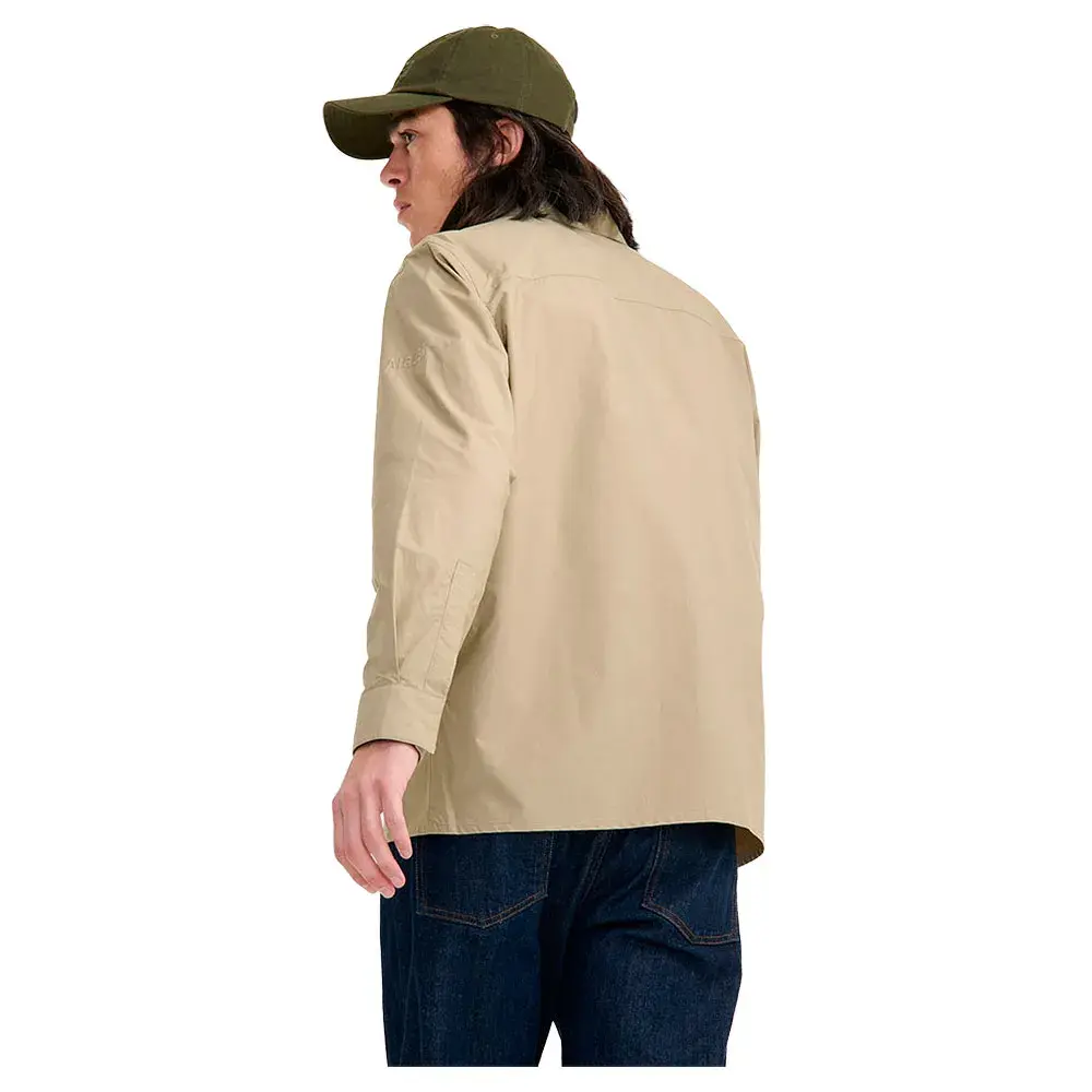 Классический воротник - длинные рукава - 2 нагрудных накладных кармана с клапанами и 1 потайной кнопкой - брелок на левом нагрудном кармане - 2 низких боковых накладных кармана на молнии - манжеты с 1 потайной кнопкой - прямой подол - вышитый логотип птицы внизу правой манжеты - вышивка aigle 1853 на левом плече.
