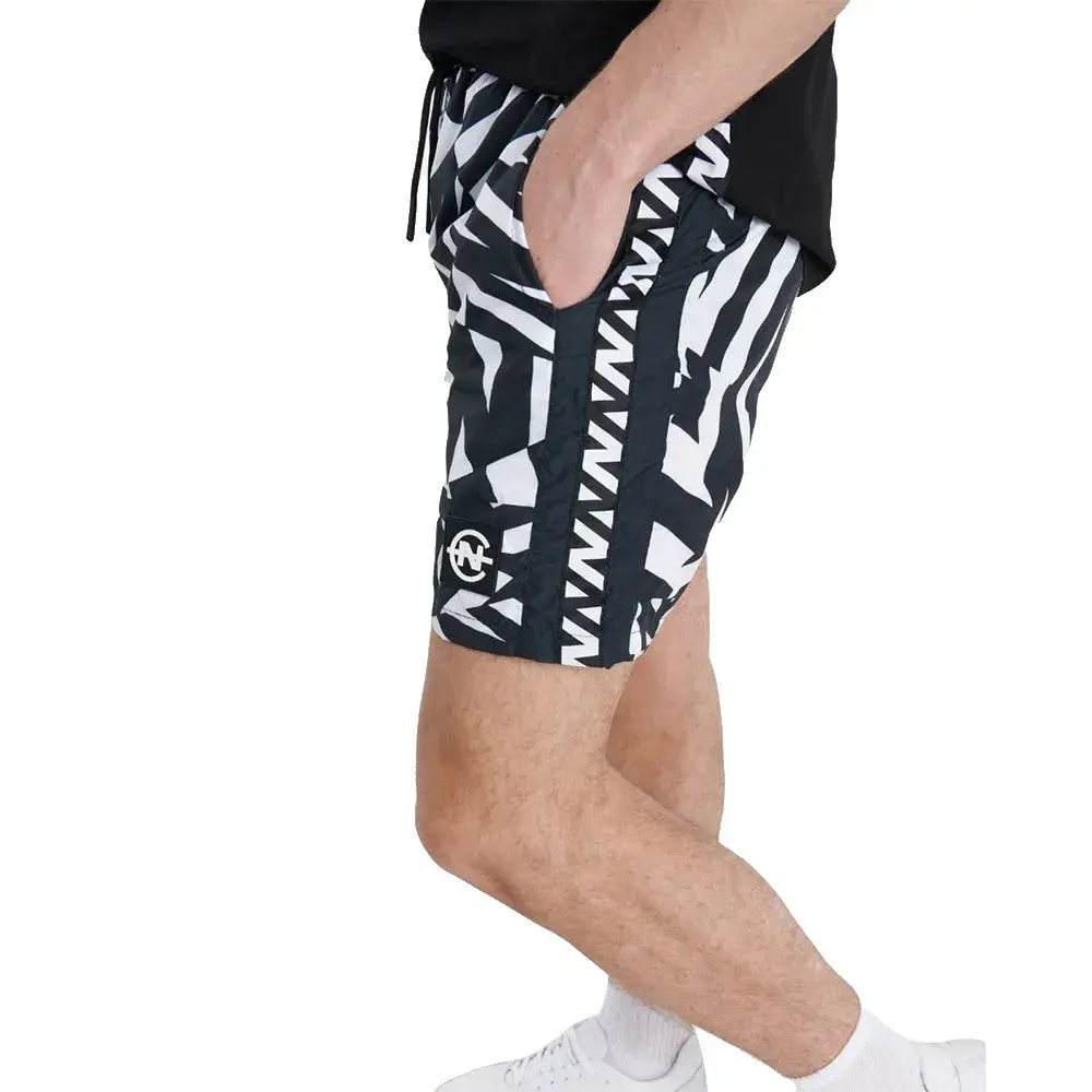Мужской купальник бренда NAUTICA из быстросохнущей ткани с эластичным поясом, геометрическим принтом и вышитым логотипом.