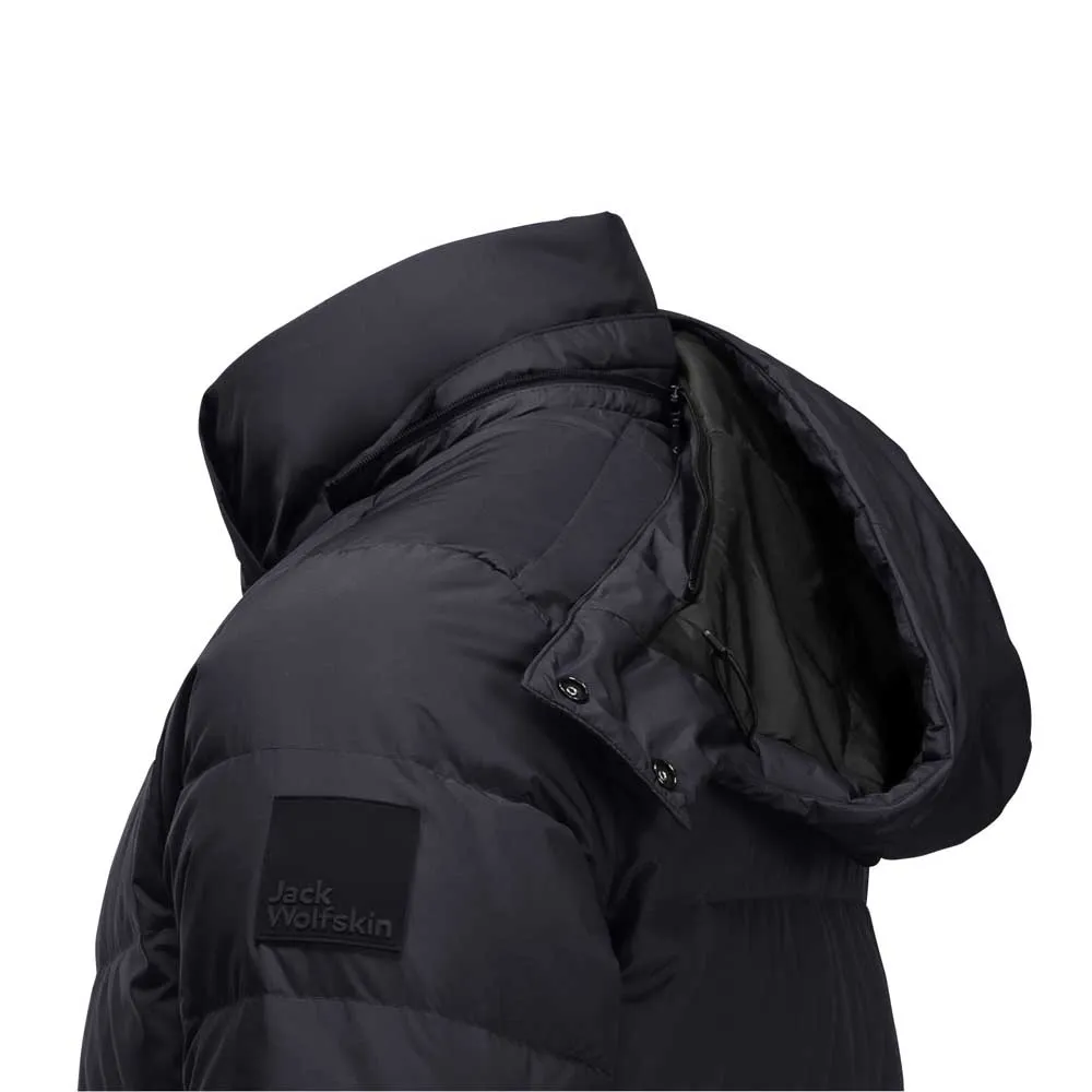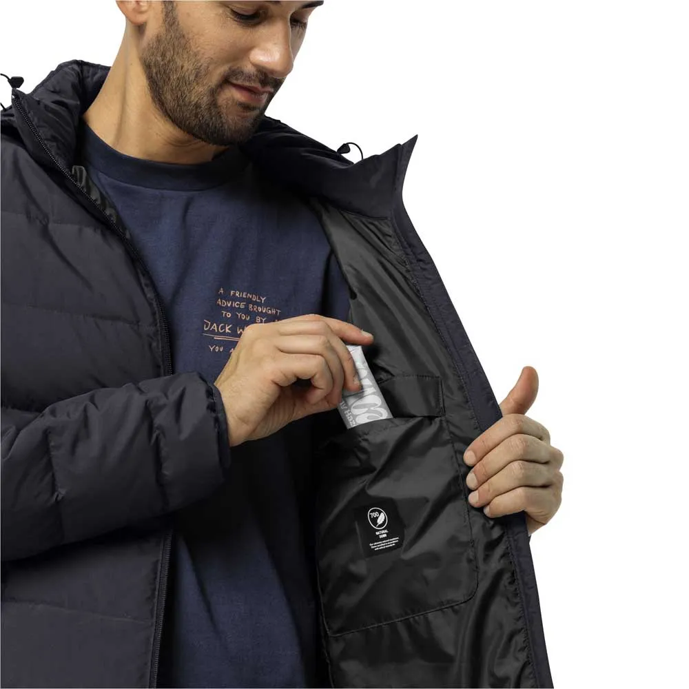 Теплая, ветрозащитная и водоотталкивающая пуховая куртка с капюшоном.