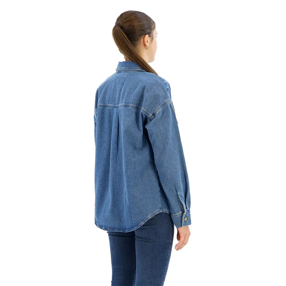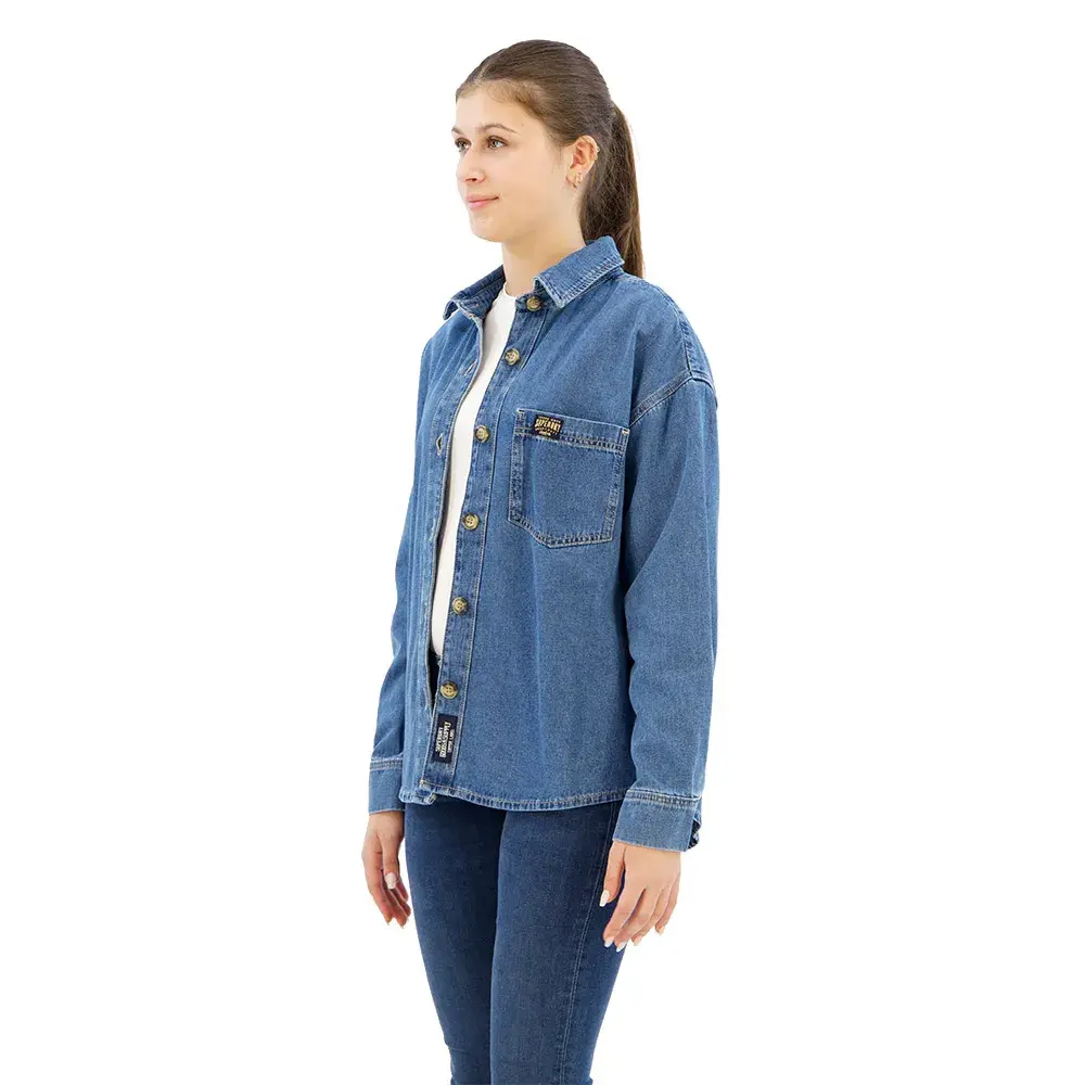 Классическая верхняя рубашка из джинсовой ткани средней плотности.
