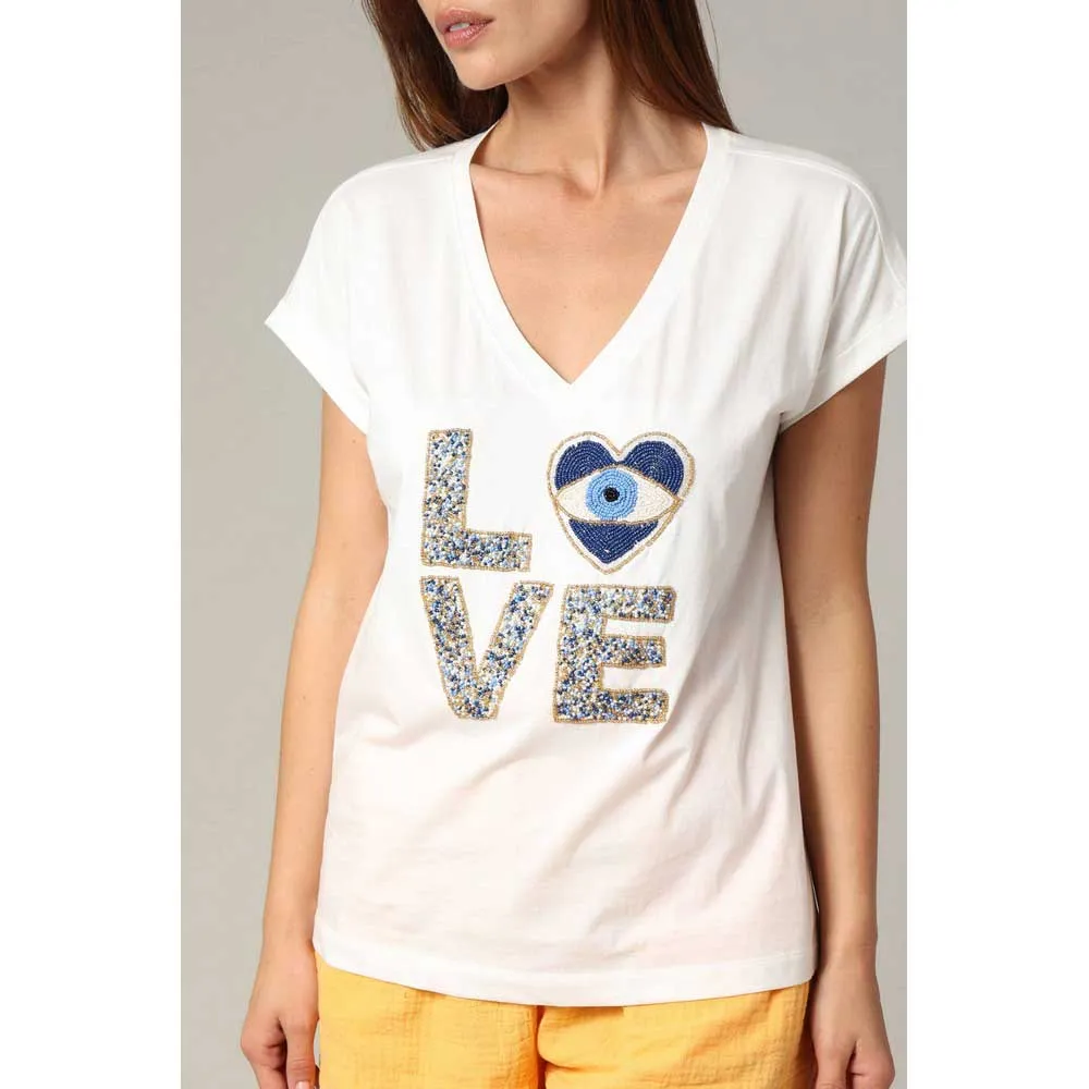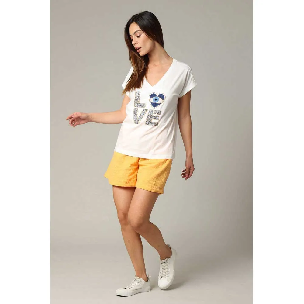 Эта универсальная футболка — ваш новый незаменимый аксессуар для создания повседневного шика, будь то бегаете по делам, встречаетесь с друзьями за бранчем или отдыхаете дома. Классический V-образный вырез подчеркивает любую фигуру, а короткие рукава обеспечивают идеальную защиту в любое время года.