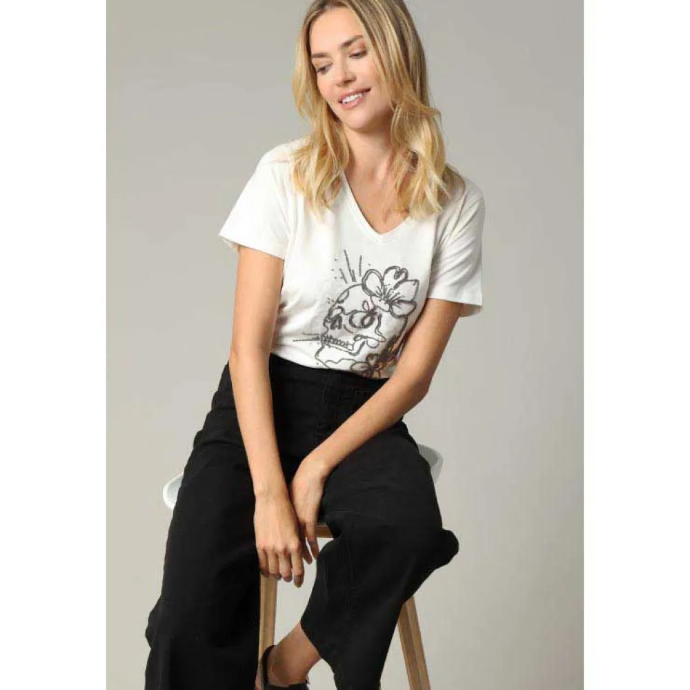 Эта футболка классическая и строгая, но в то же время имеет рок-н-ролльный, женственный стиль.