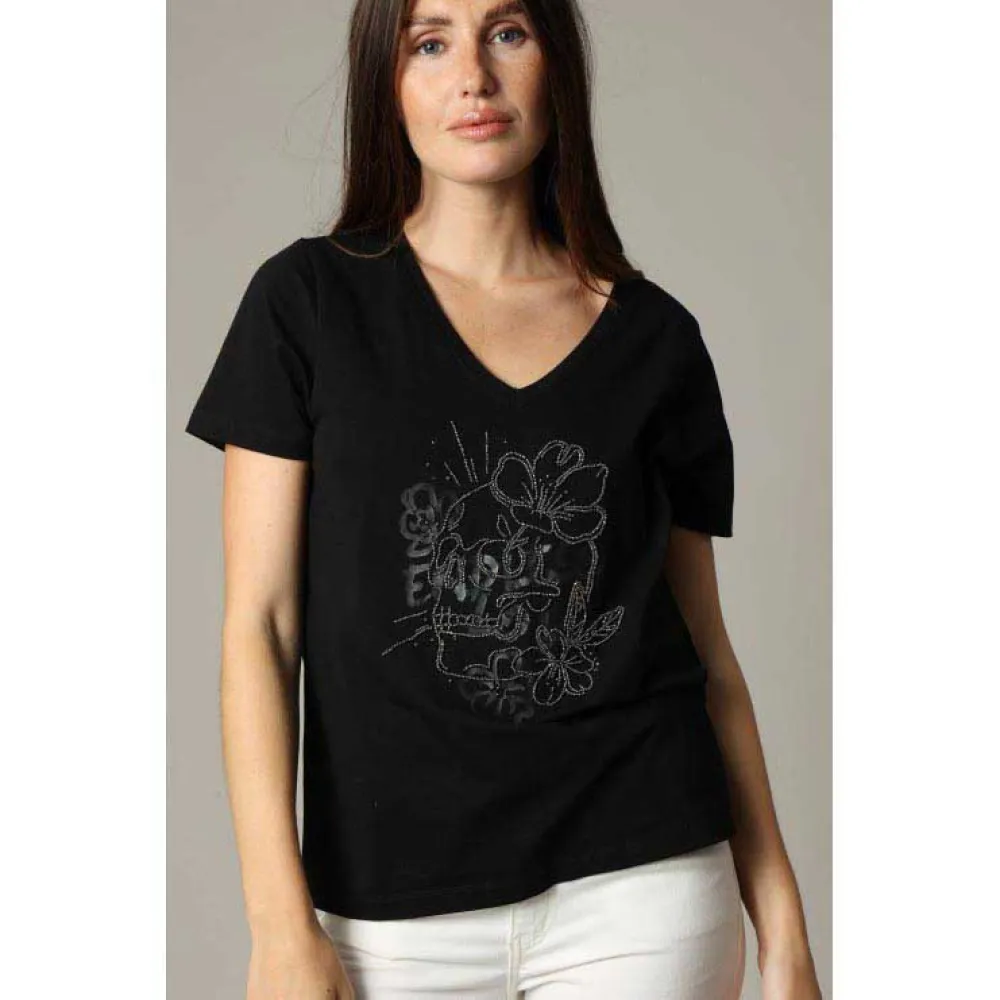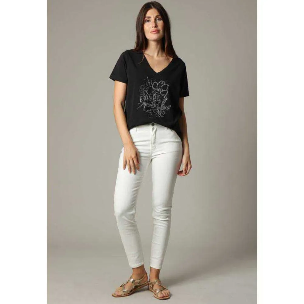 Эта футболка классическая и строгая, но в то же время имеет рок-н-ролльный, женственный стиль.