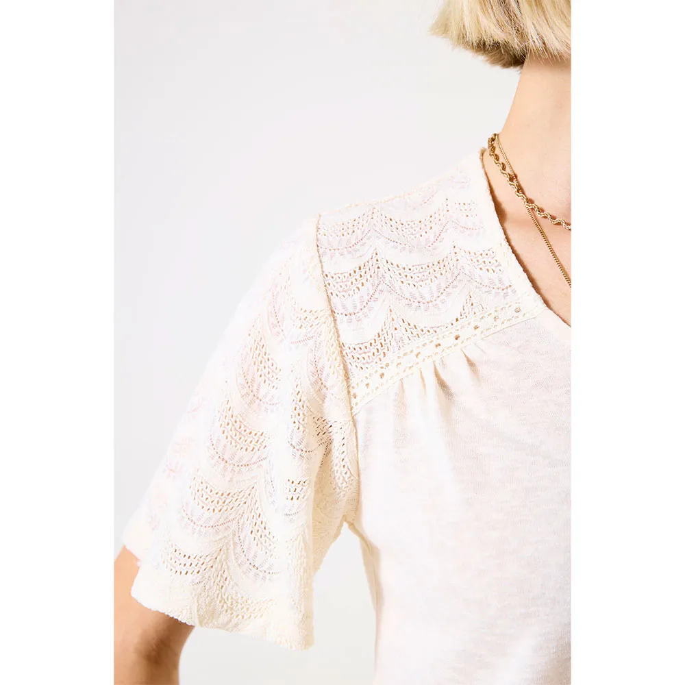 Созданная с тщательным вниманием к деталям, эта футболка создана, чтобы подчеркивать фигуру. Классический V-образный вырез универсально подходит, создавая элегантную линию, которая удлиняет шею и красиво обрамляет декольте. Короткие рукава обеспечивают комфортное и непринужденное ощущение, обеспечивая необходимое количество покрытия для теплых дней или для бесшовного наложения под пиджаки и кардиганы. Ее классический крой грациозно драпируется по телу, не облегая, предлагая силуэт, который одновременно удобен и шикарен, позволяя легко двигаться в течение всего напряженного дня.