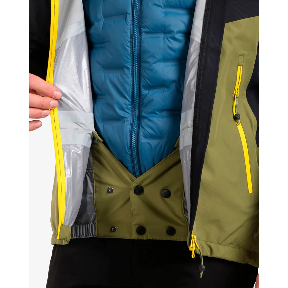 Вентиляционные молнии в подмышечных впадинах и перфорированная вставка в воротнике обеспечивают оптимальную циркуляцию воздуха, а съемный снежный воротник и элемент RECCO повышают уровень вашей защиты и безопасности.