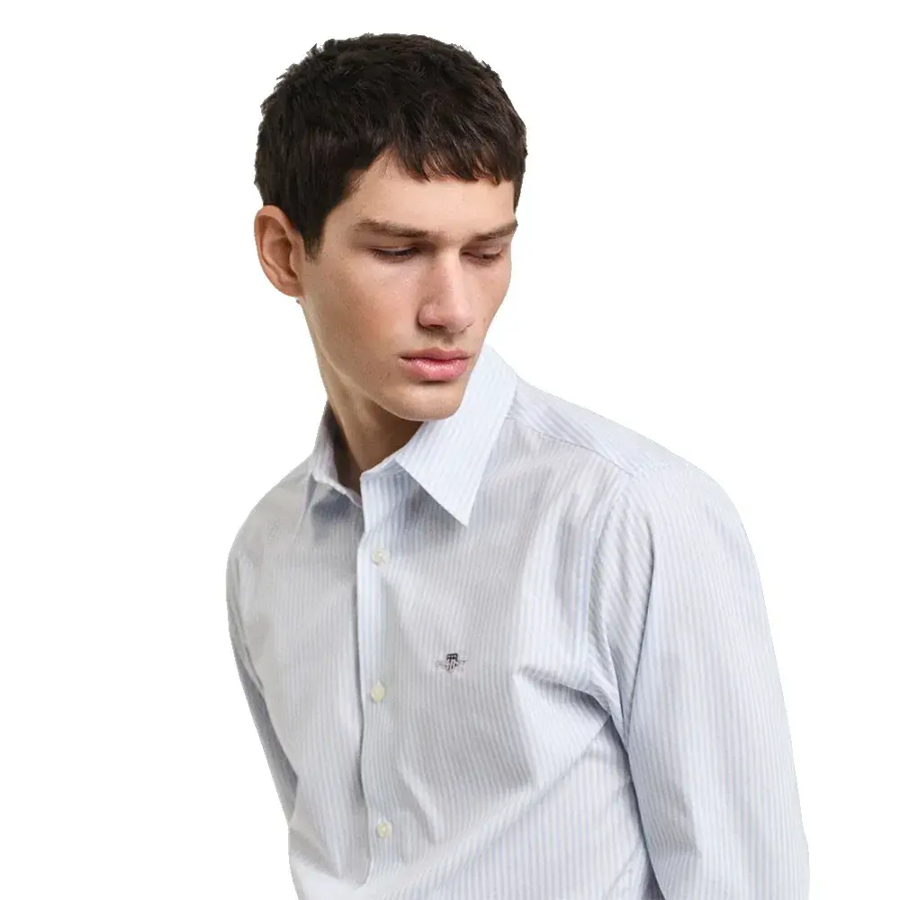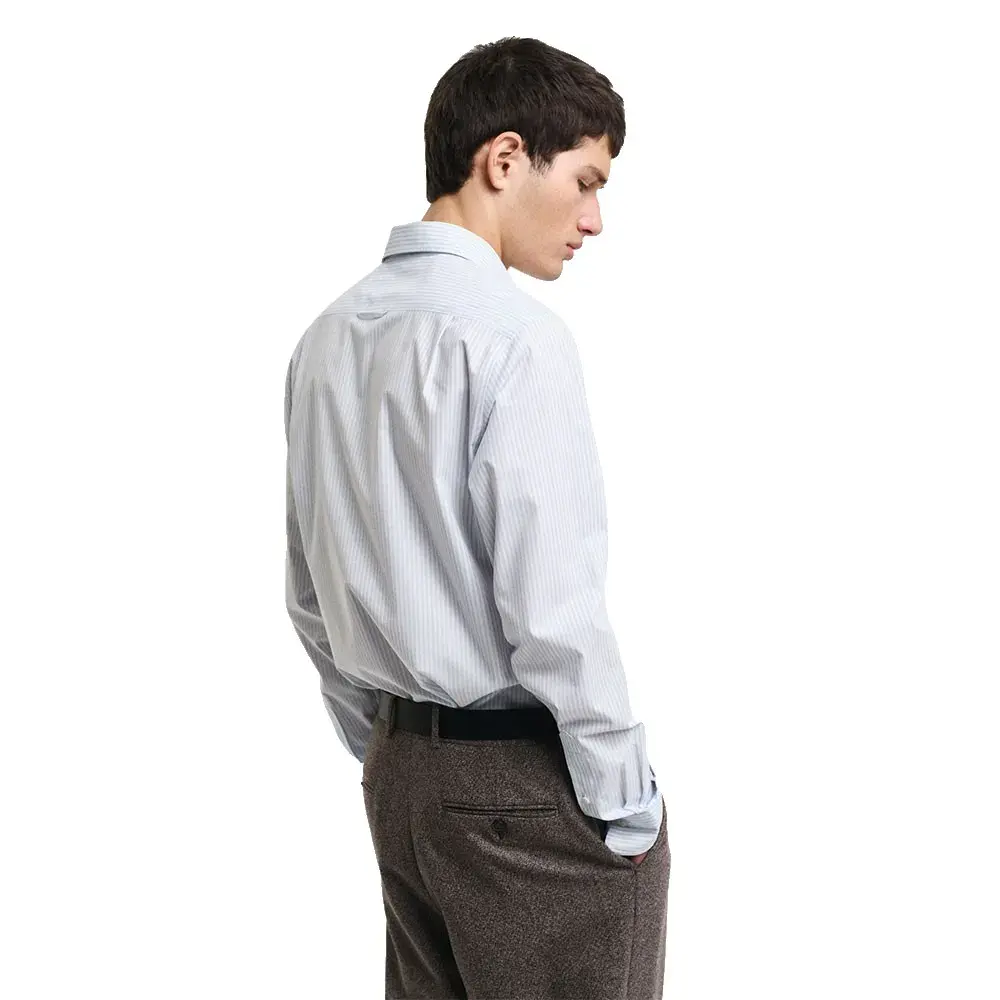 Эта полосатая рубашка облегающего кроя выполнена из 100% хлопка и может похвастаться поплиновой эластичной тканью для дополнительного комфорта.