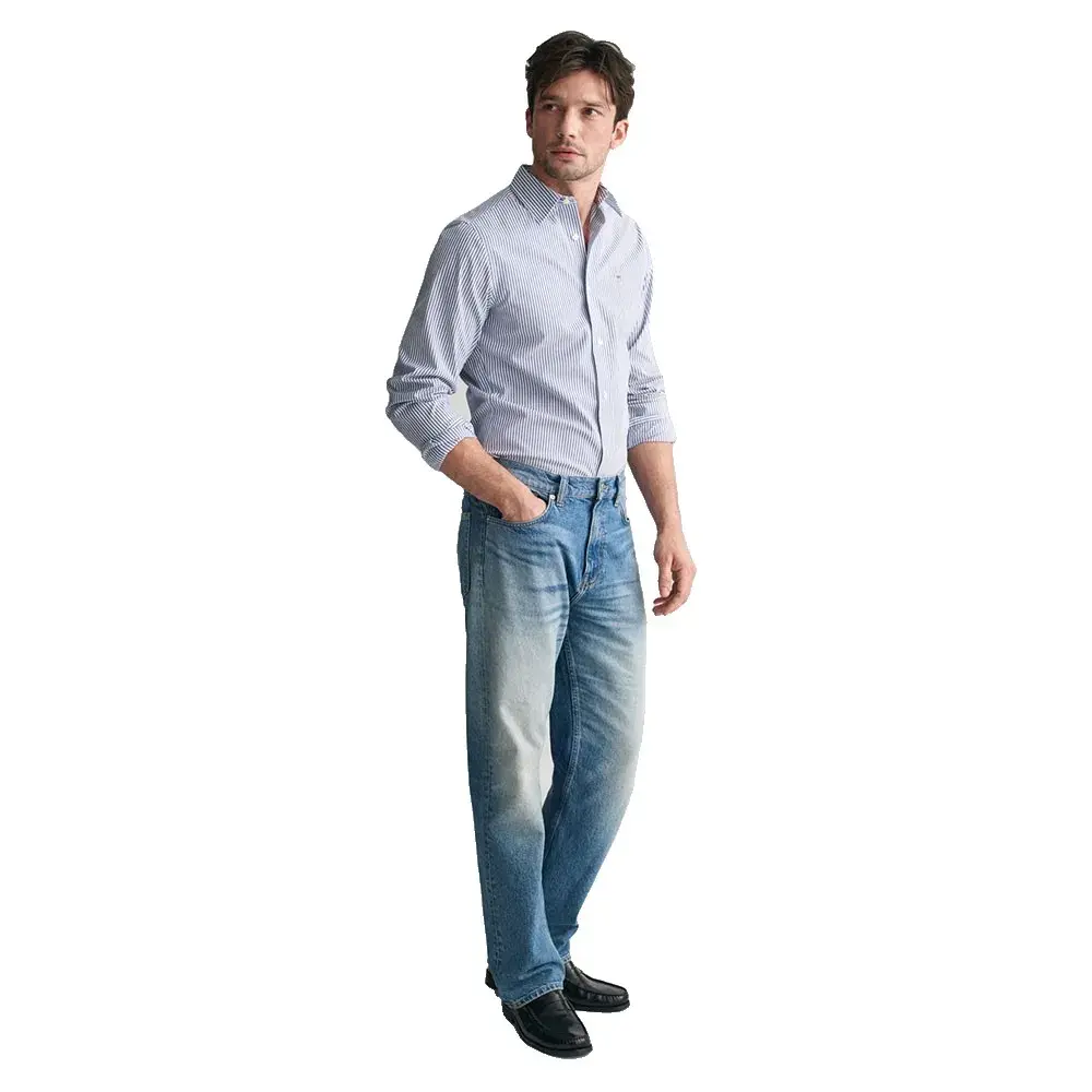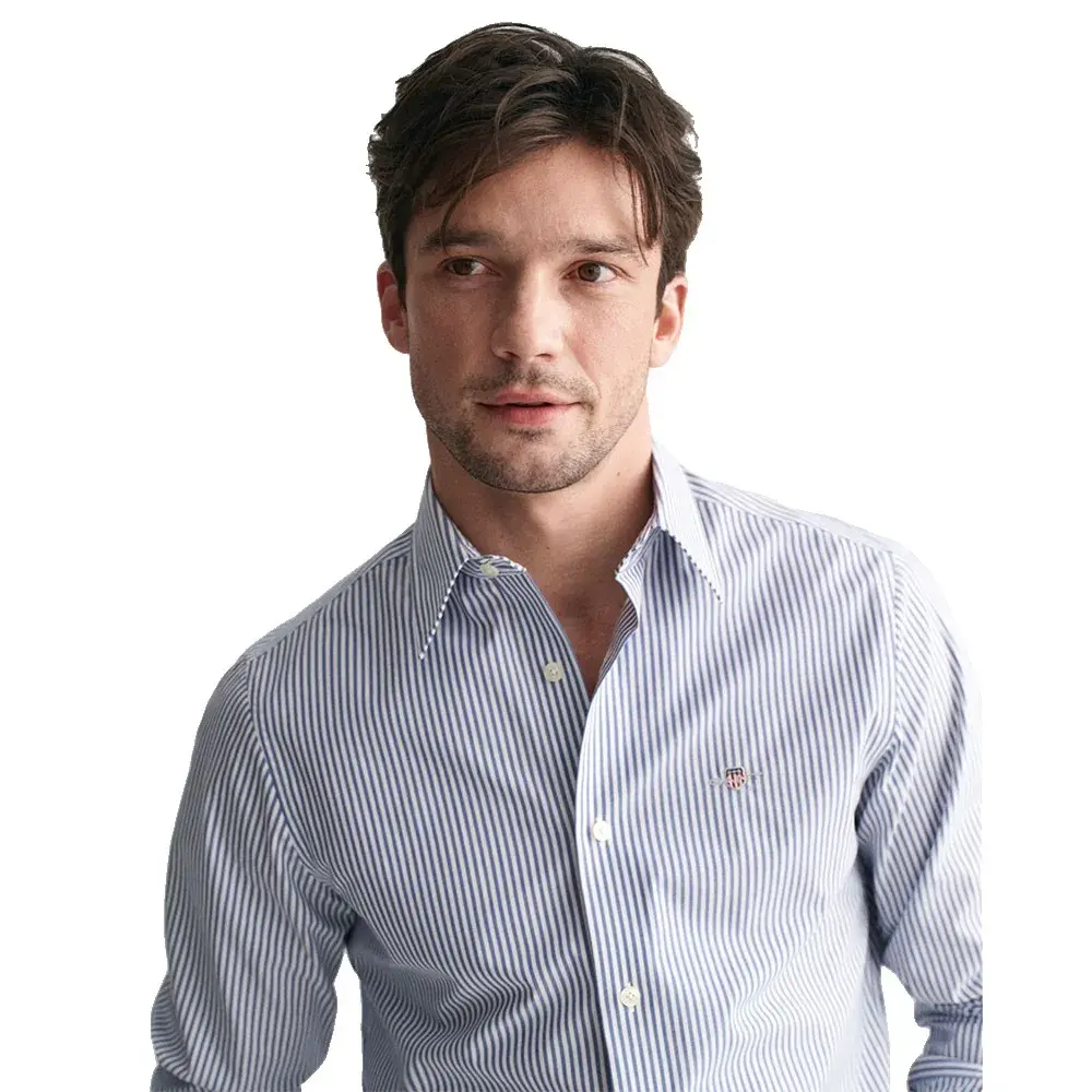 Эта полосатая рубашка облегающего кроя выполнена из 100% хлопка и может похвастаться поплиновой эластичной тканью для дополнительного комфорта.