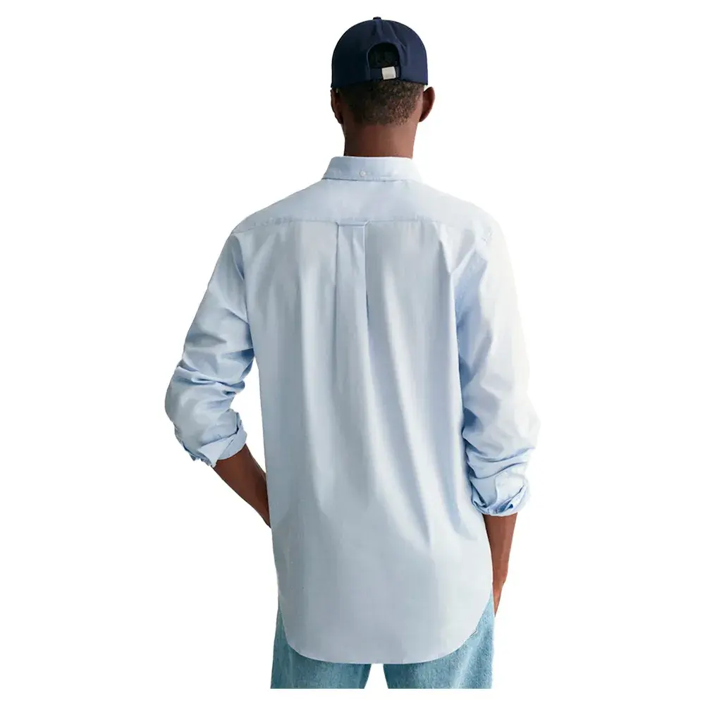 Эта рубашка прямого кроя имеет отложной воротник на пуговицах, закругленный подол и плоскую складку с фирменной петлей GANT сзади.