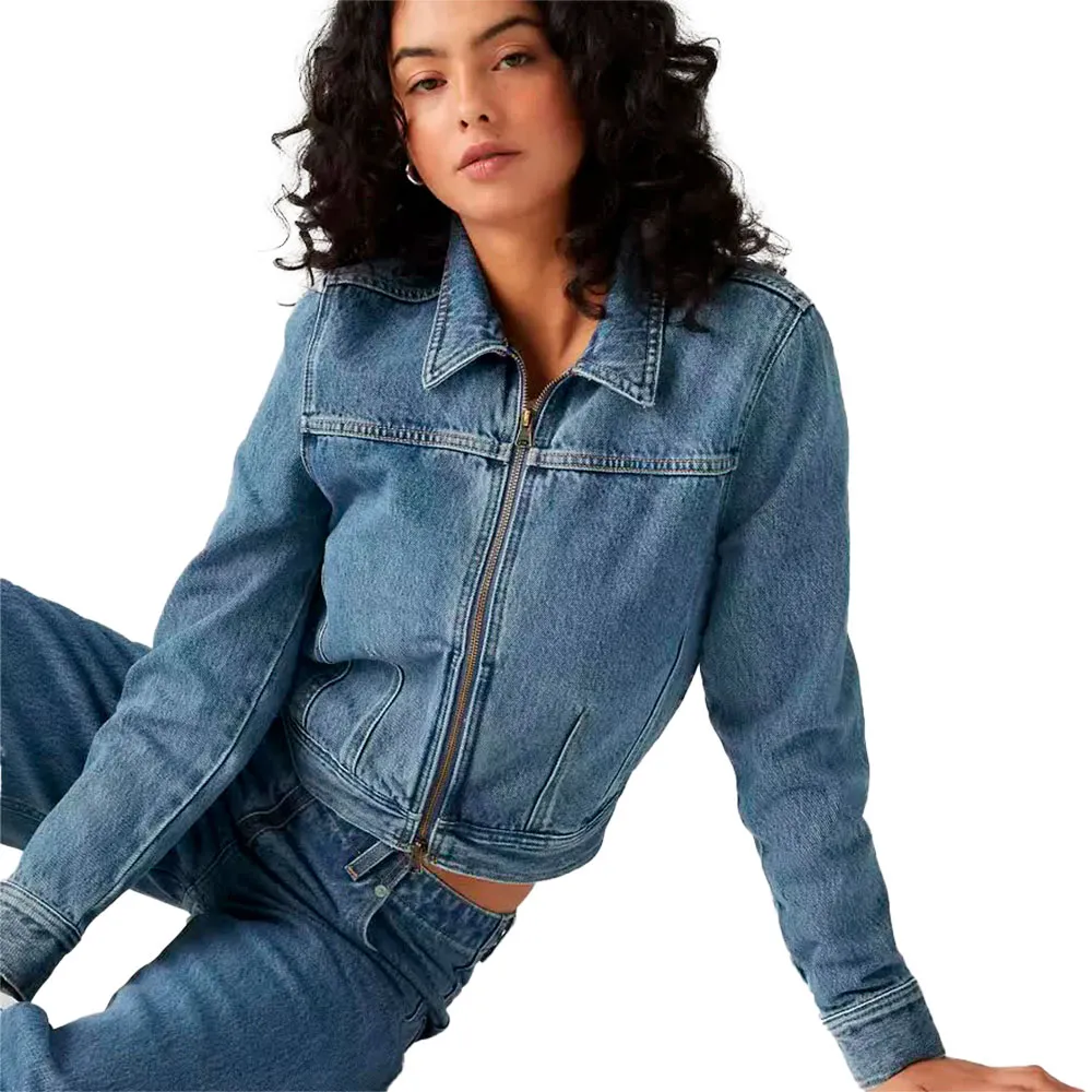 Укороченный, приталенный крой, застежка-молния спереди и вытачки создают винтажный образ.