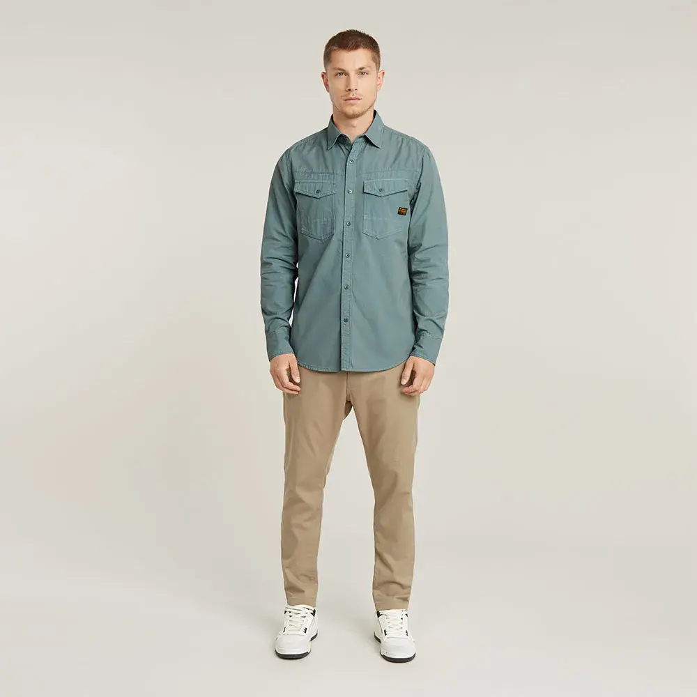 Нагрудные карманы с клапанами завершают образ.