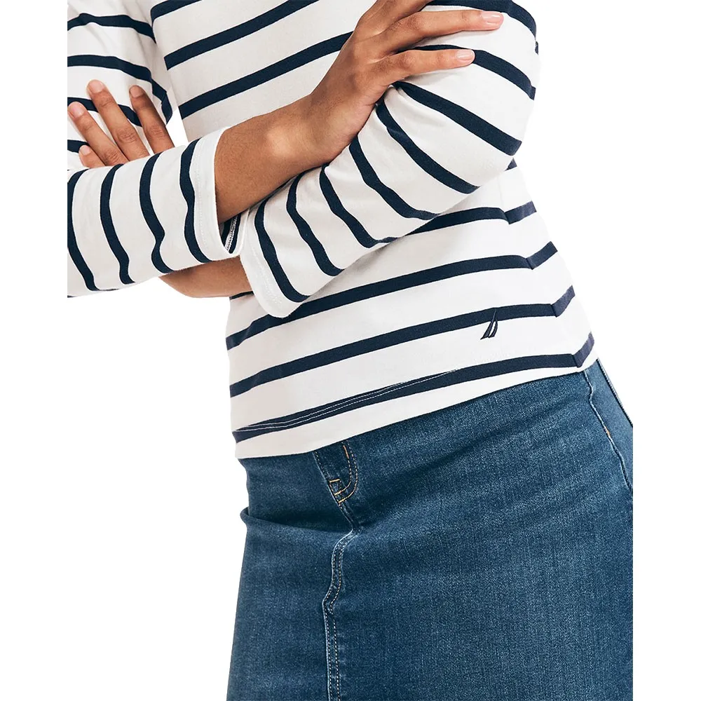 Женская футболка в полоску NAUTICA с длинными рукавами и вышитым логотипом.