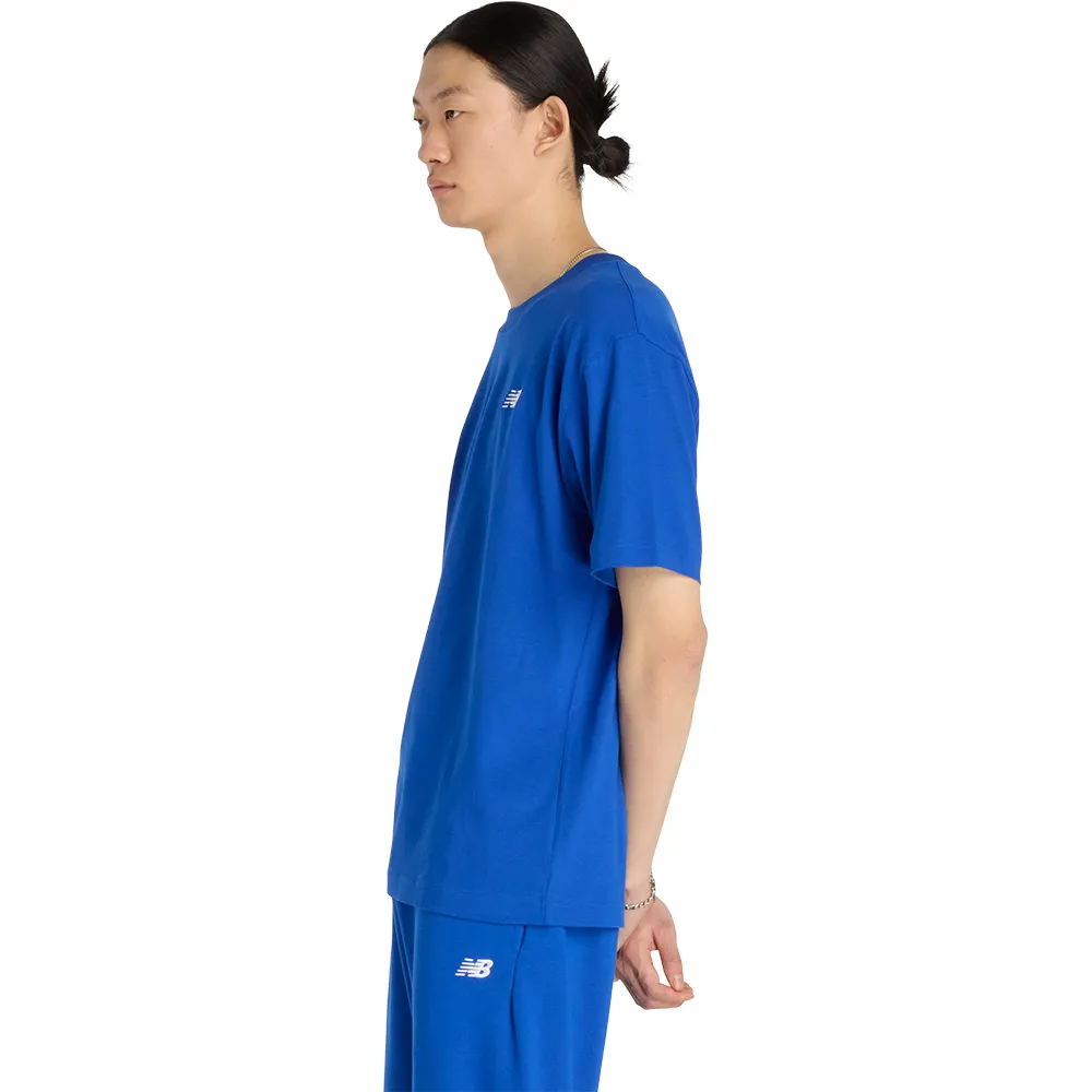 Знаменитая графика New Balance на груди служит знаком подлинности и качества, добавляя нотку спортивной изысканности в остальном простой дизайн. Этот сдержанный, но эффектный брендинг связывает вас с миром спортивных достижений и инновационного дизайна. Классический круглый воротник сохраняет свою форму после носки, обеспечивая чистый и элегантный вид, который идеально обрамляет лицо. Это больше, чем просто футболка; Это универсальная и необходимая вещь, созданная для вашего активного и повседневного образа жизни.