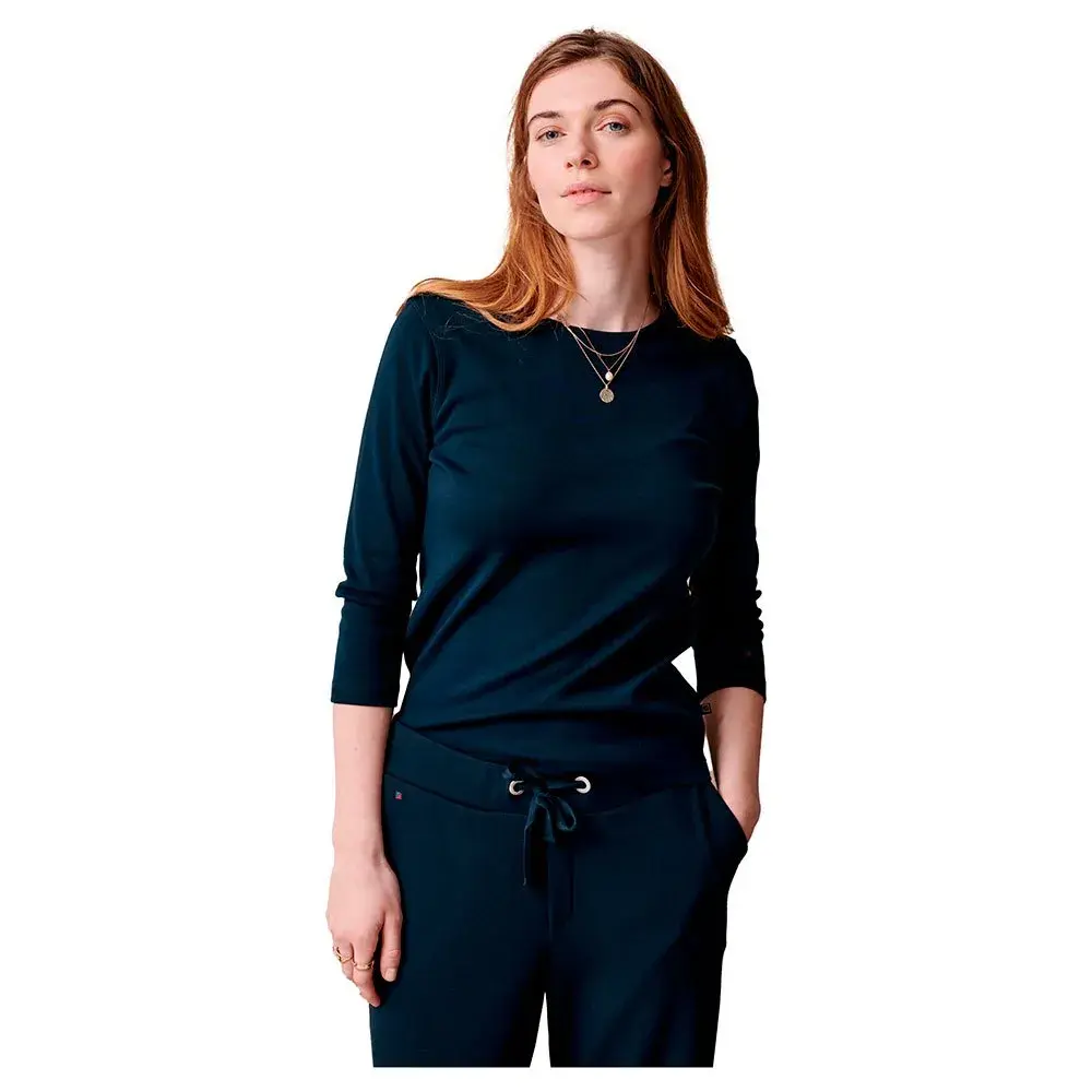 Ощутите комфорт и стиль в футболке с длинным рукавом Clarissa темно-синего или небесно-голубого цвета. Идеально подходит для спокойного дня в офисе или отдыха на выходных.
