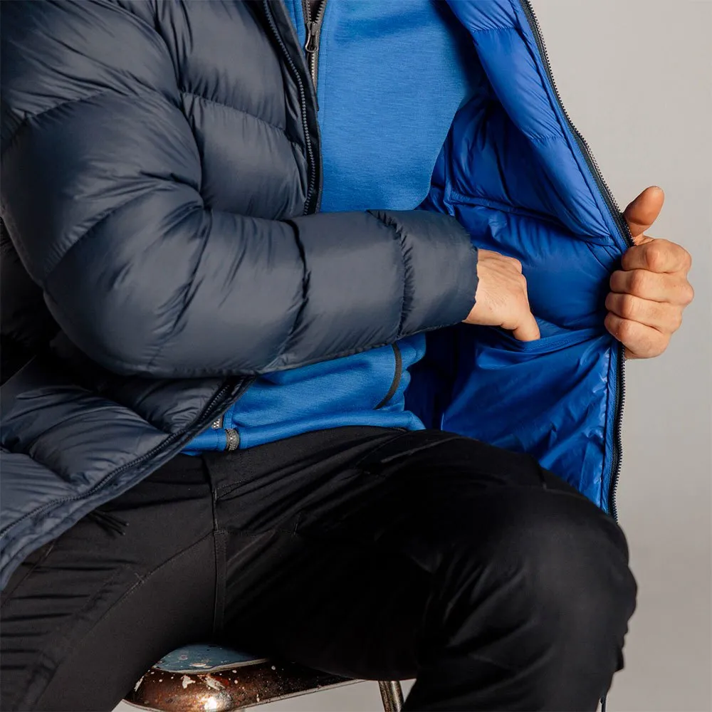 Эта универсальная пуховая куртка разработана для защиты во время любых вылазок на природу и легко помещается в рюкзак. Она также отлично подходит в качестве повседневной зимней куртки. Чтобы избежать использования новых ресурсов, наполнитель изготовлен из переработанного пуха, а ткань — из переработанного нейлона с использованием сквозного стежка. Куртка имеет просторный капюшон с двухсторонней регулировкой для оптимальной посадки, регулируемый эластичный шнур по нижнему краю и мягкую резинку на внутренней стороне манжеты, которая предотвращает проникновение холодного воздуха внутрь. Двусторонние молнии спереди - практичная деталь для лучшей вентиляции и сохранения тепла груди и шеи.
