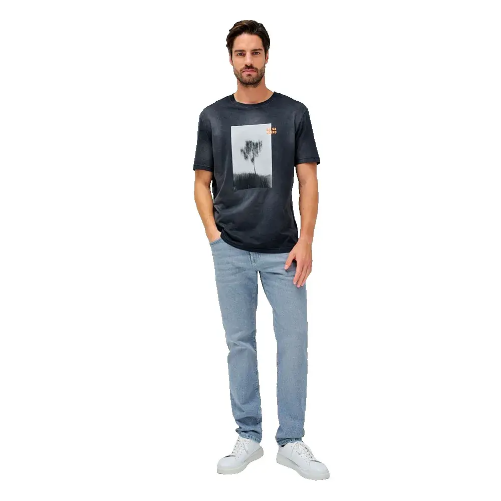 Эта черная стираная футболка с принтом — идеальный выбор для тех, кто ищет повседневный и современный стиль.