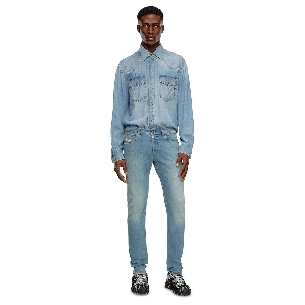 Чистый светло-голубой оттенок является частью нашего выбора ДНК — вневременные, знаковые стирки, которые лежат в основе отличительной эстетики Diesel.