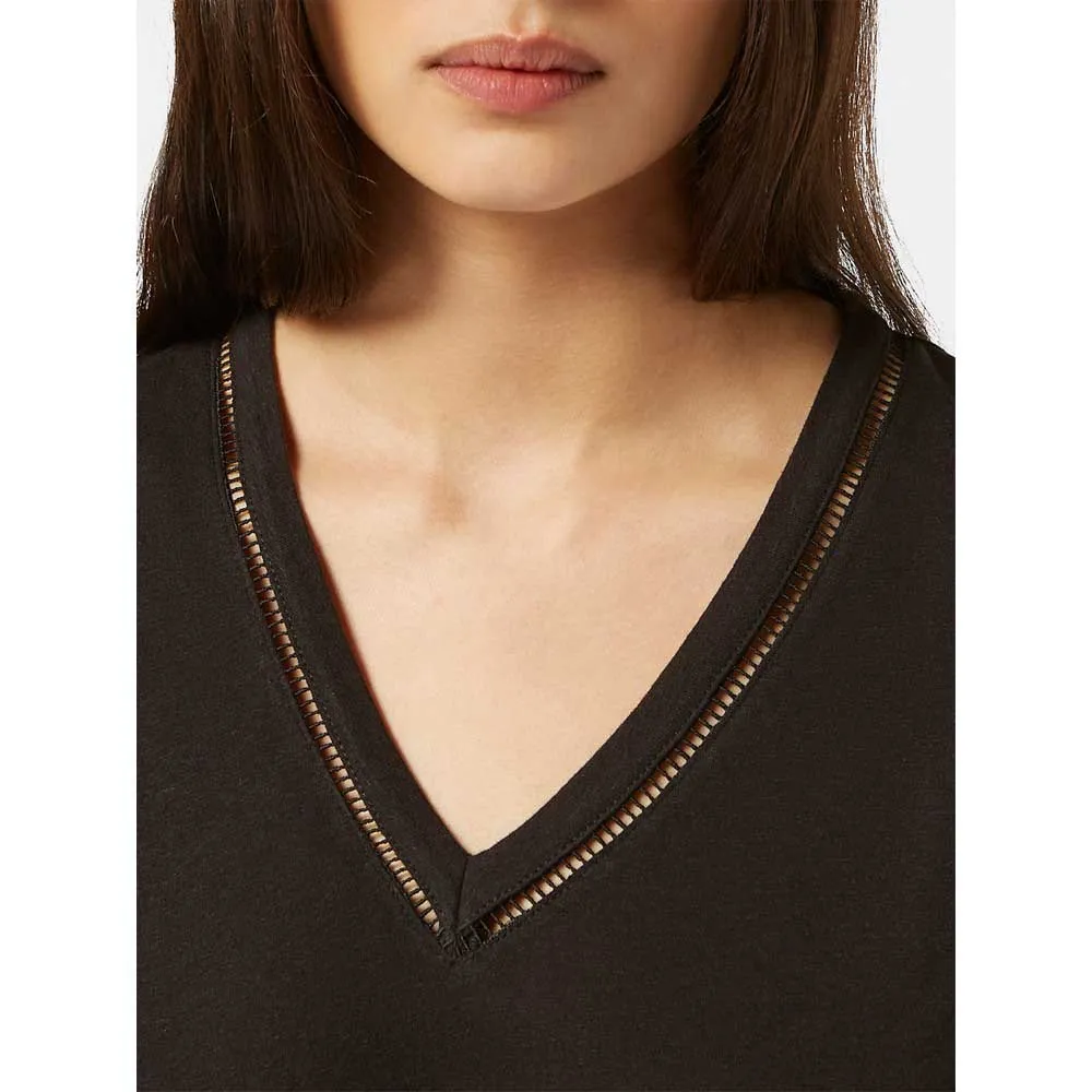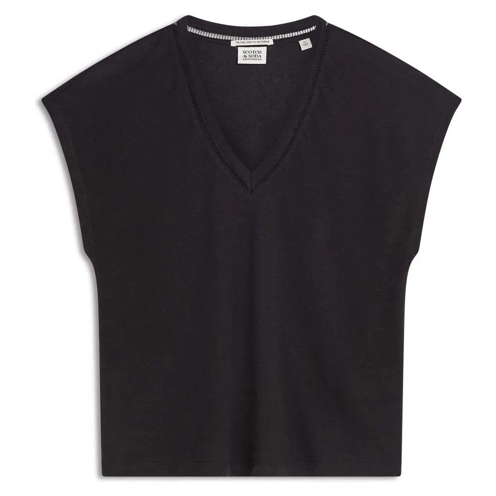 Подчеркните свой повседневный стиль с помощью элегантной футболки с коротким рукавом и V-образным вырезом SCOTCH & SODA U9A00648T. Эта женская футболка — универсальный предмет гардероба, идеально подходящий для создания самых разных образов: от повседневных нарядов для выходных до элегантных ансамблей для работы или вечерних выходов. Привлекательный V-образный вырез добавляет женственности и удлиняет шею, а короткие рукава обеспечивают удобную защиту и классический силуэт. Разработанная для современной женщины, которая ценит комфорт и стиль, эта футболка станет обязательным дополнением к любому капсульному гардеробу.
