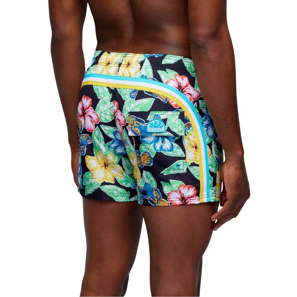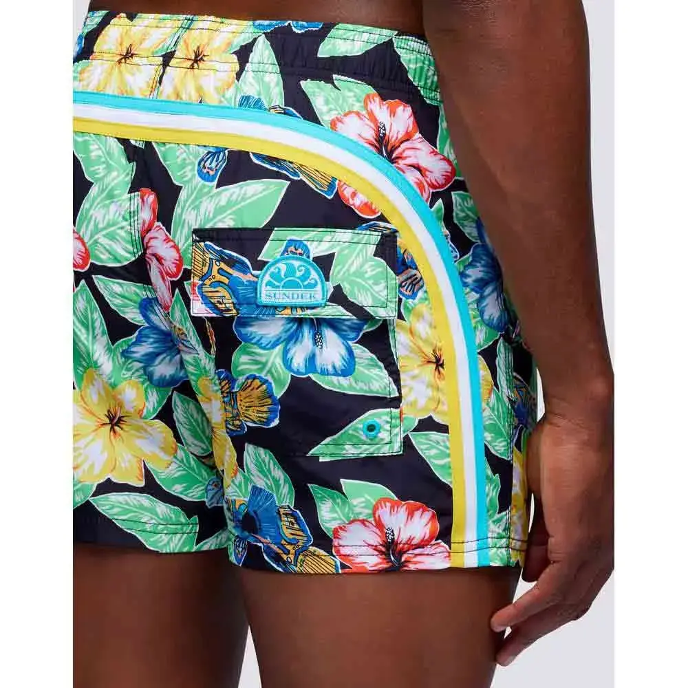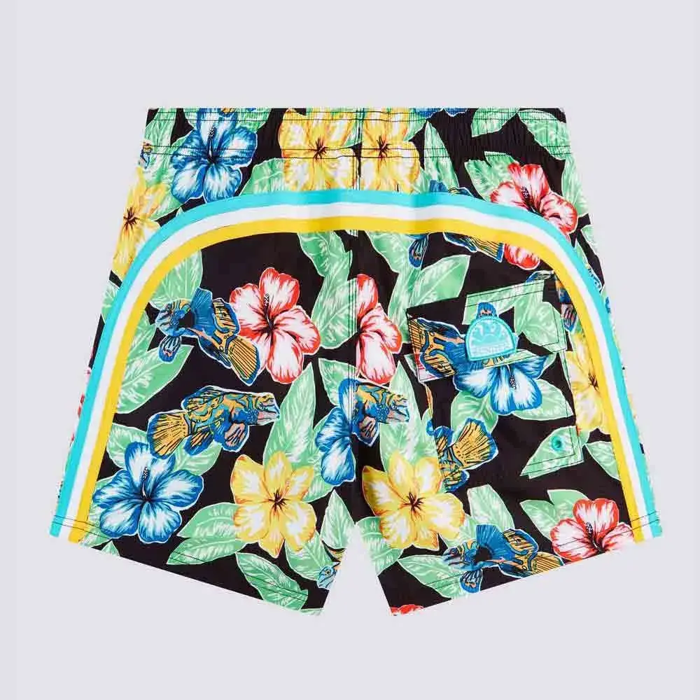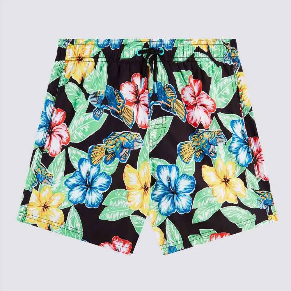 Плавающие плавки с эластичным поясом на шнурке, из лёгкой переработанной ткани Repreve, изготовленной из пластиковых бутылок. Легендарная радуга на спине. Архивный принт «Анималистичные рыбы».