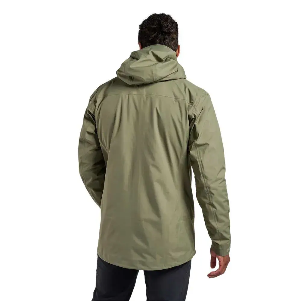 Трехслойная конструкция помещает водонепроницаемую мембрану между 100% переработанным 21D Ripstop Нейлоновая лицевая ткань и подкладка для повышенной прочности и комфорта при ношении.