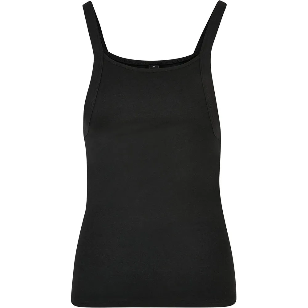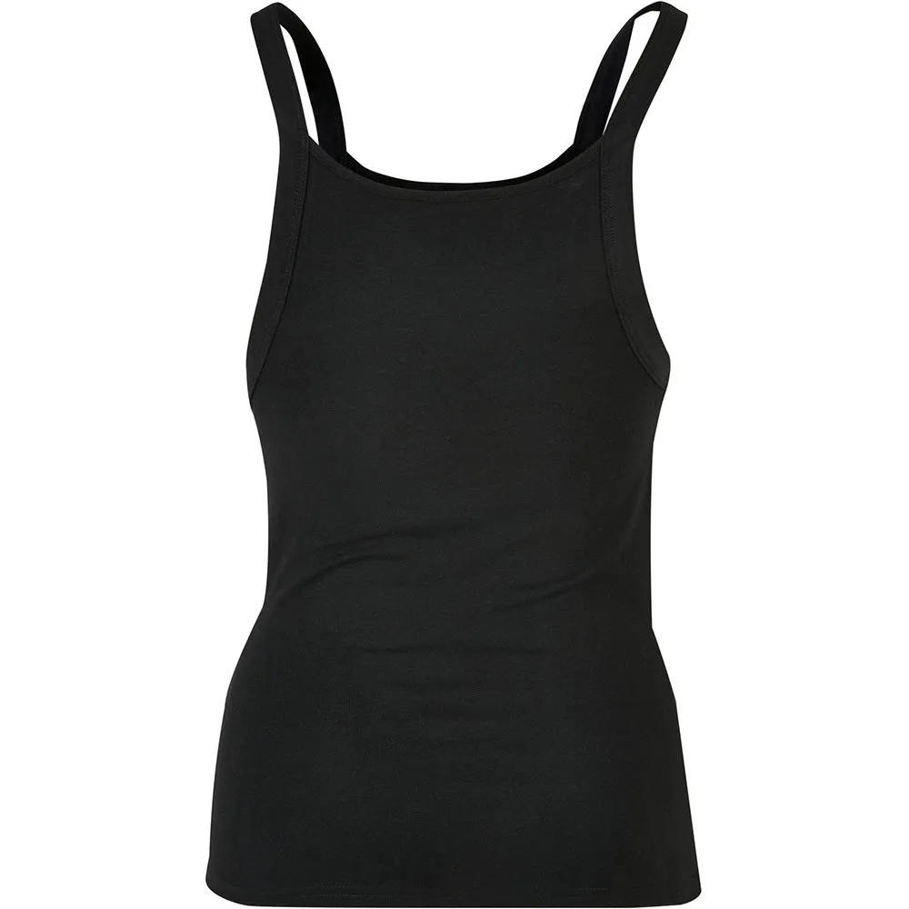 Эта женская майка выполнена в городском стиле с очень глубокими проймами и при этом имеет облегающий крой, который плотно облегает фигуру.