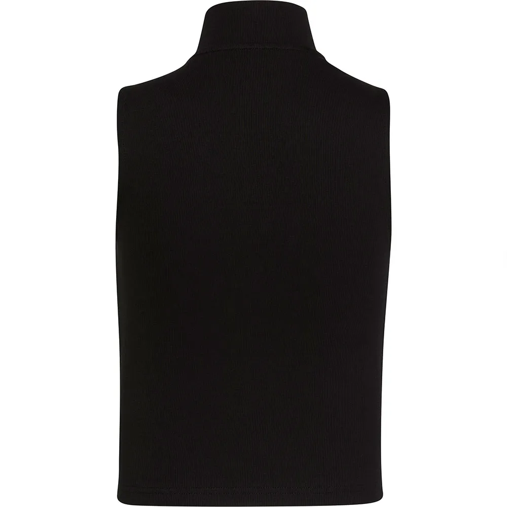 Женская майка из хлопка и эластана, с застежкой-молнией и тканым логотипом на груди.