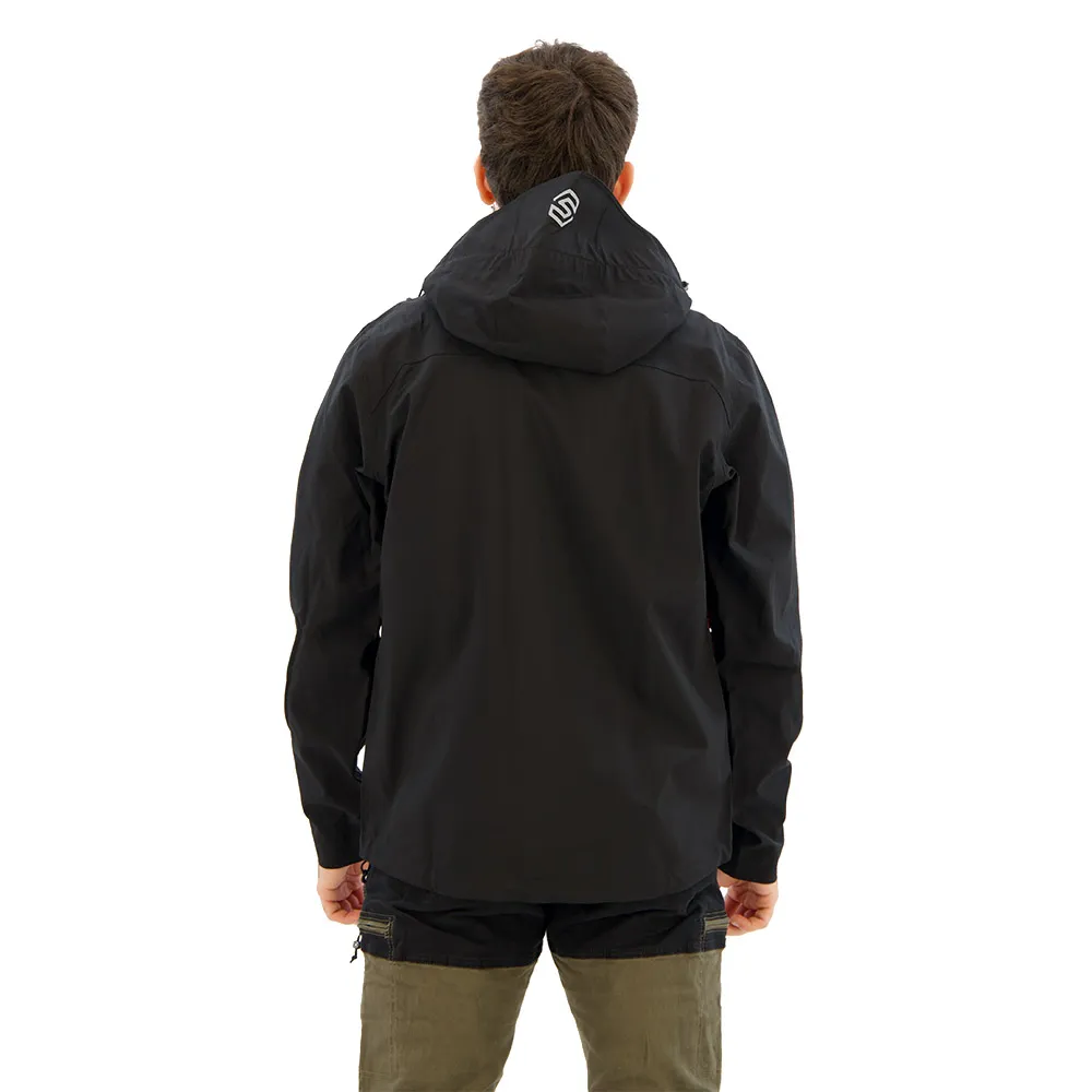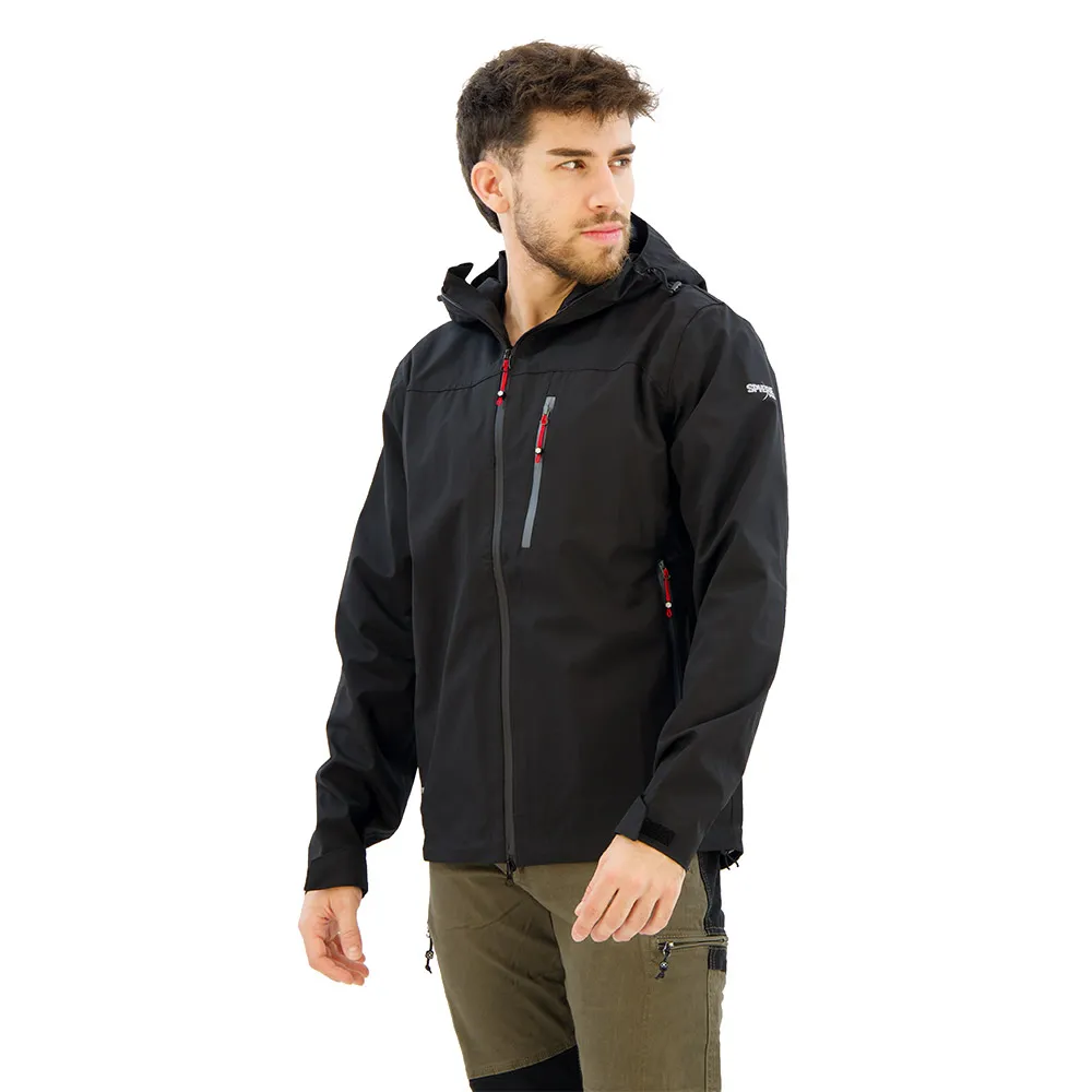 Эта куртка отличается элегантным черным внешним видом с серыми акцентными деталями, что придает ей современный и стильный вид.