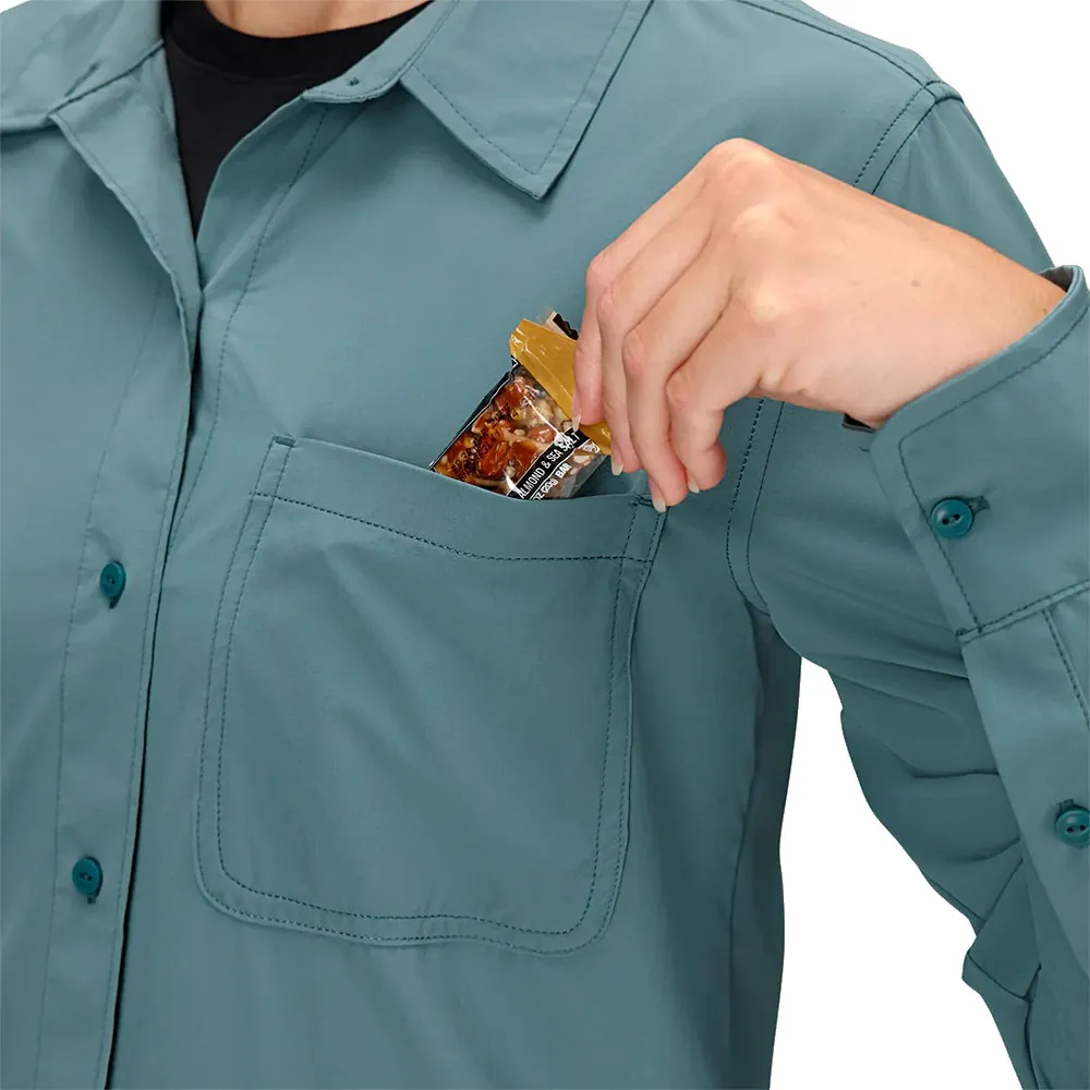 Эта техническая рубашка с длинным рукавом, созданная для долгих дней под солнцем, обеспечивает воздухопроницаемость, комфорт, эластичность и надежную защиту.
