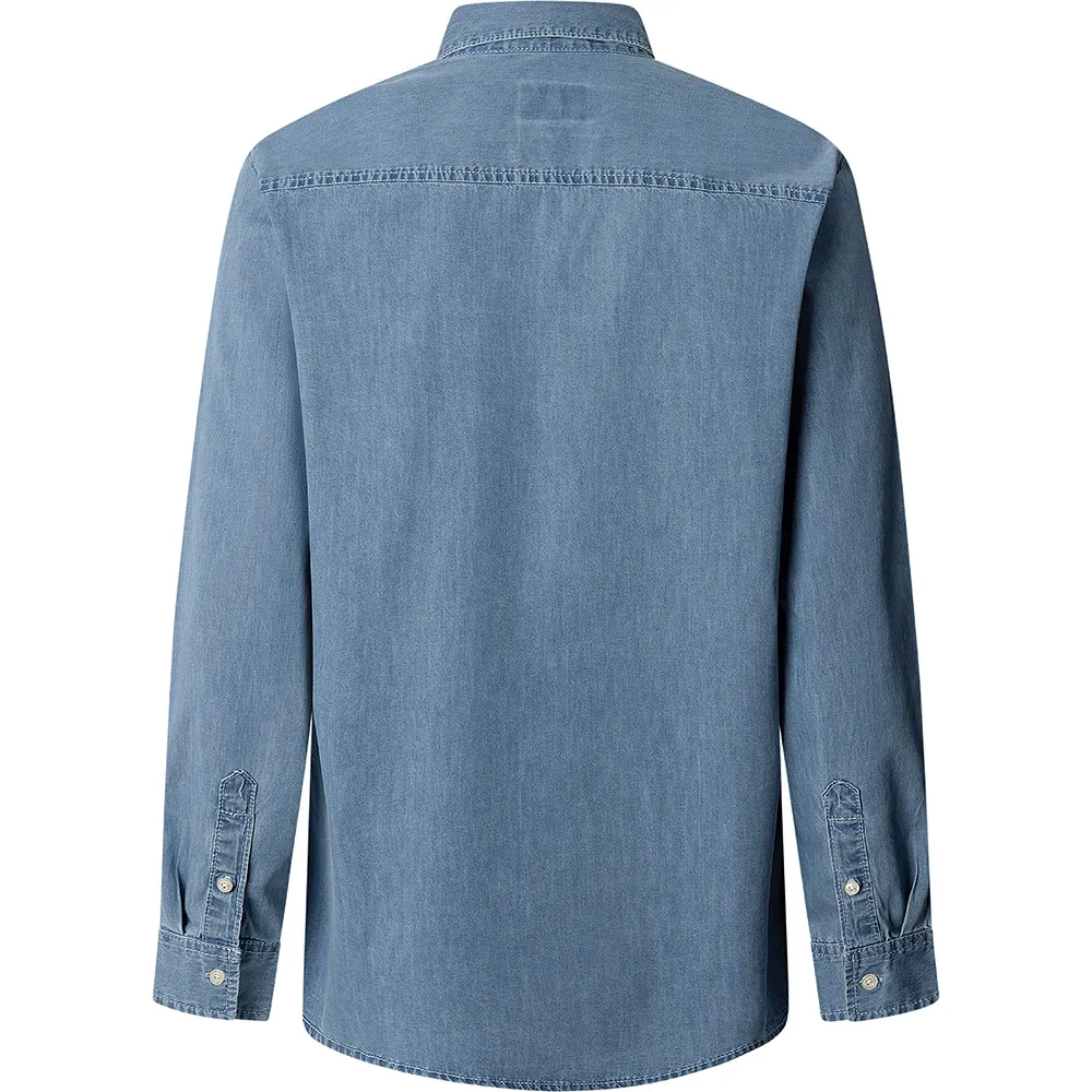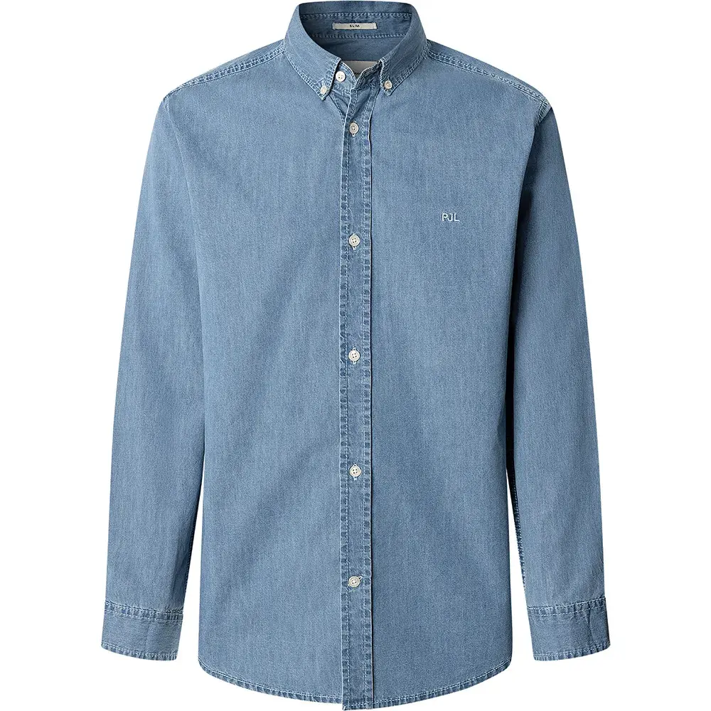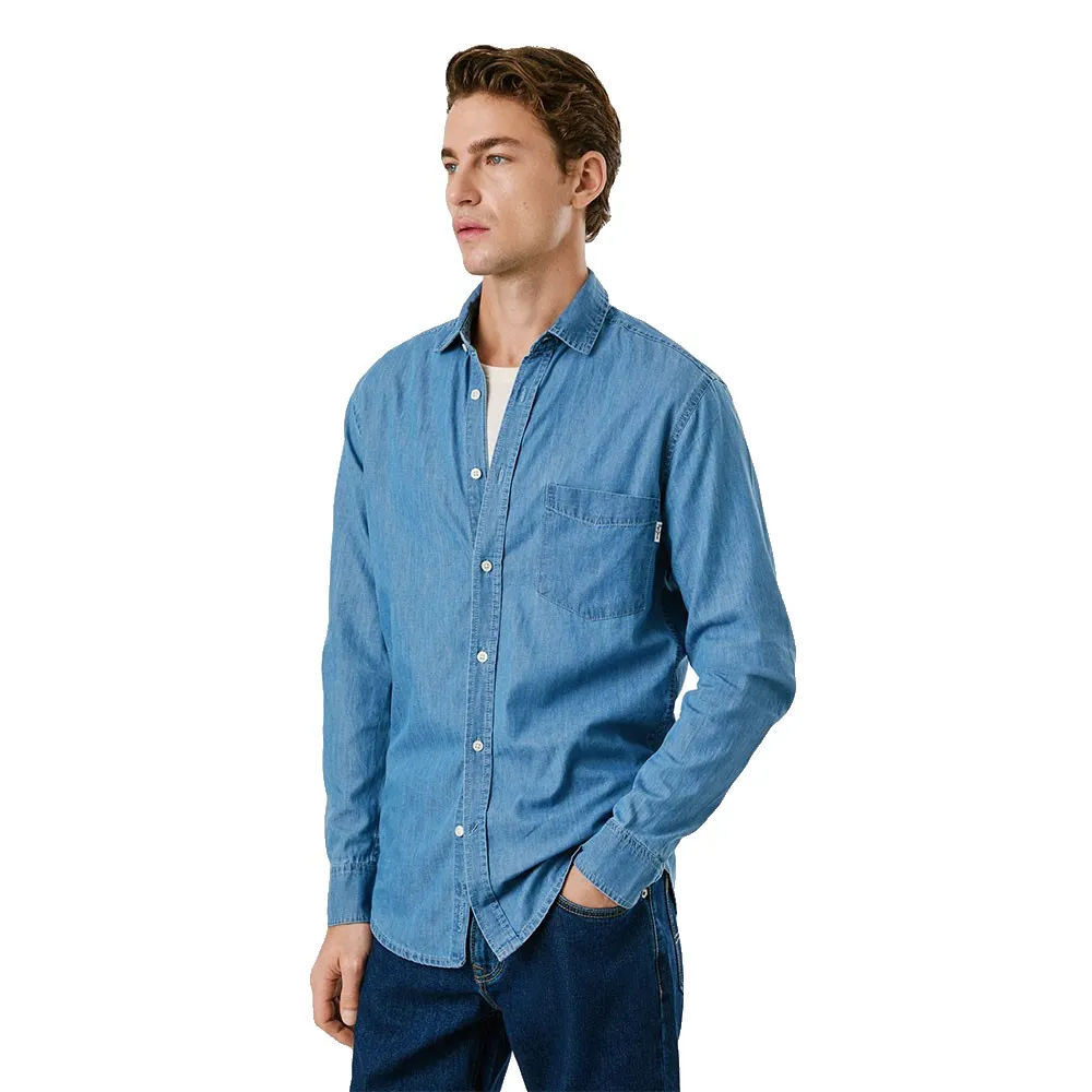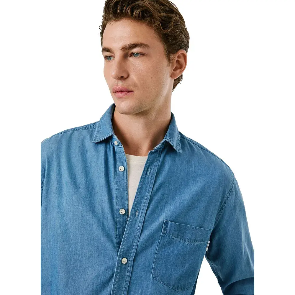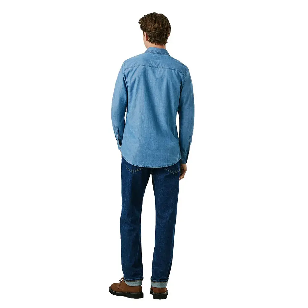 Классическая рубашка облегающего кроя из тонкой легкой ткани средней степени стирки.
