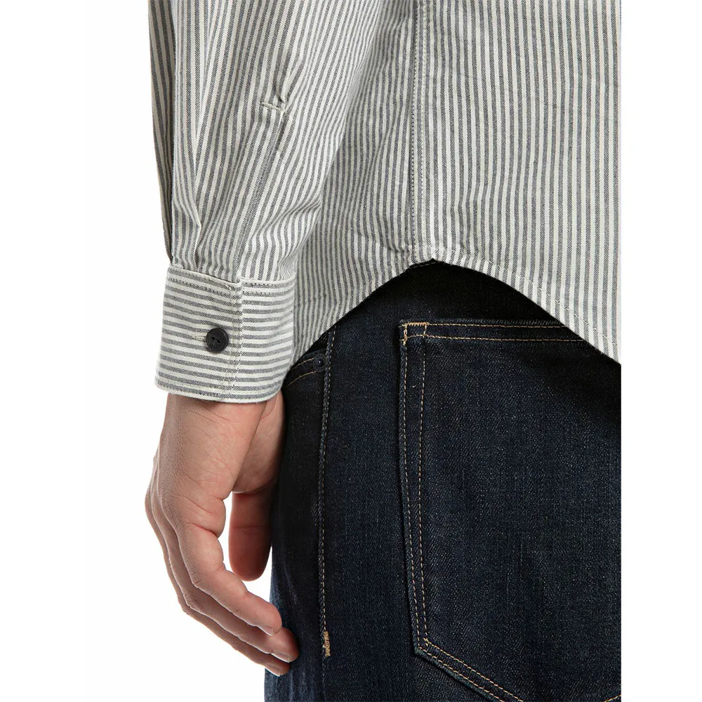 Жёлто-зелёный хлопковый оксфорд в полоску.