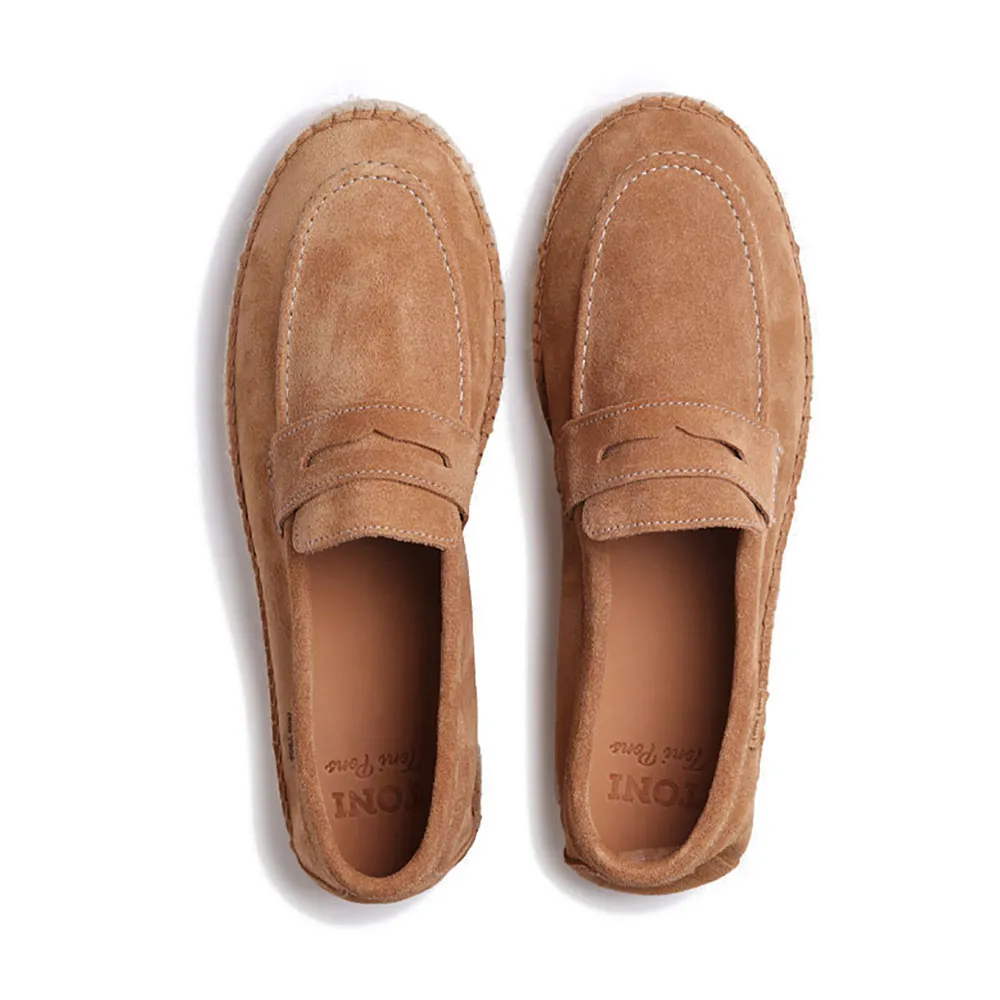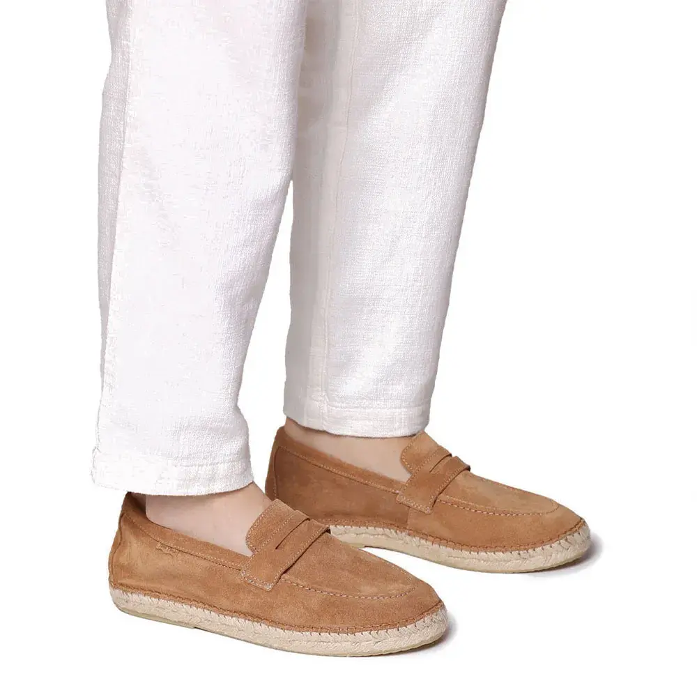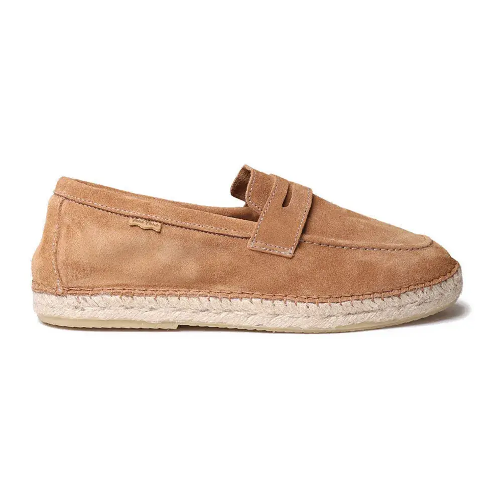 Мужские эспадрильи закрытого типа изготовлены из спилка.