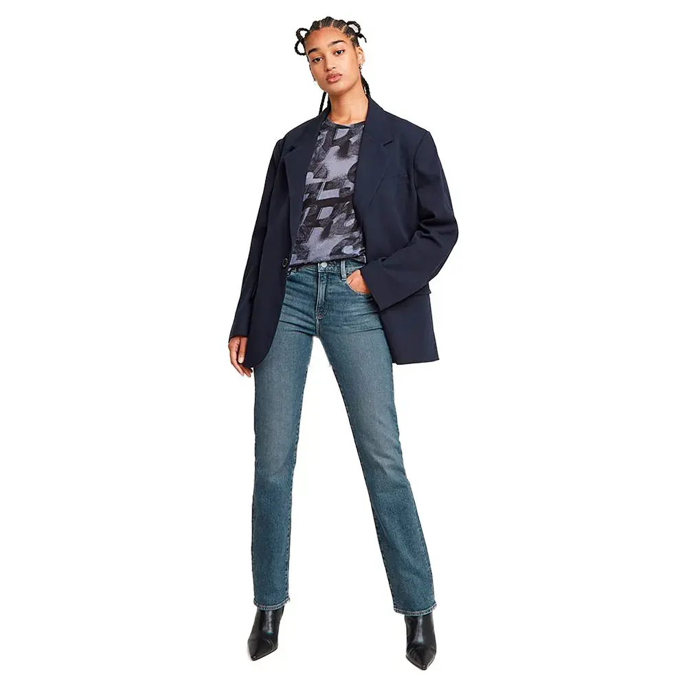 Джинсы Strace имеют прямой крой и застегиваются на молнию.