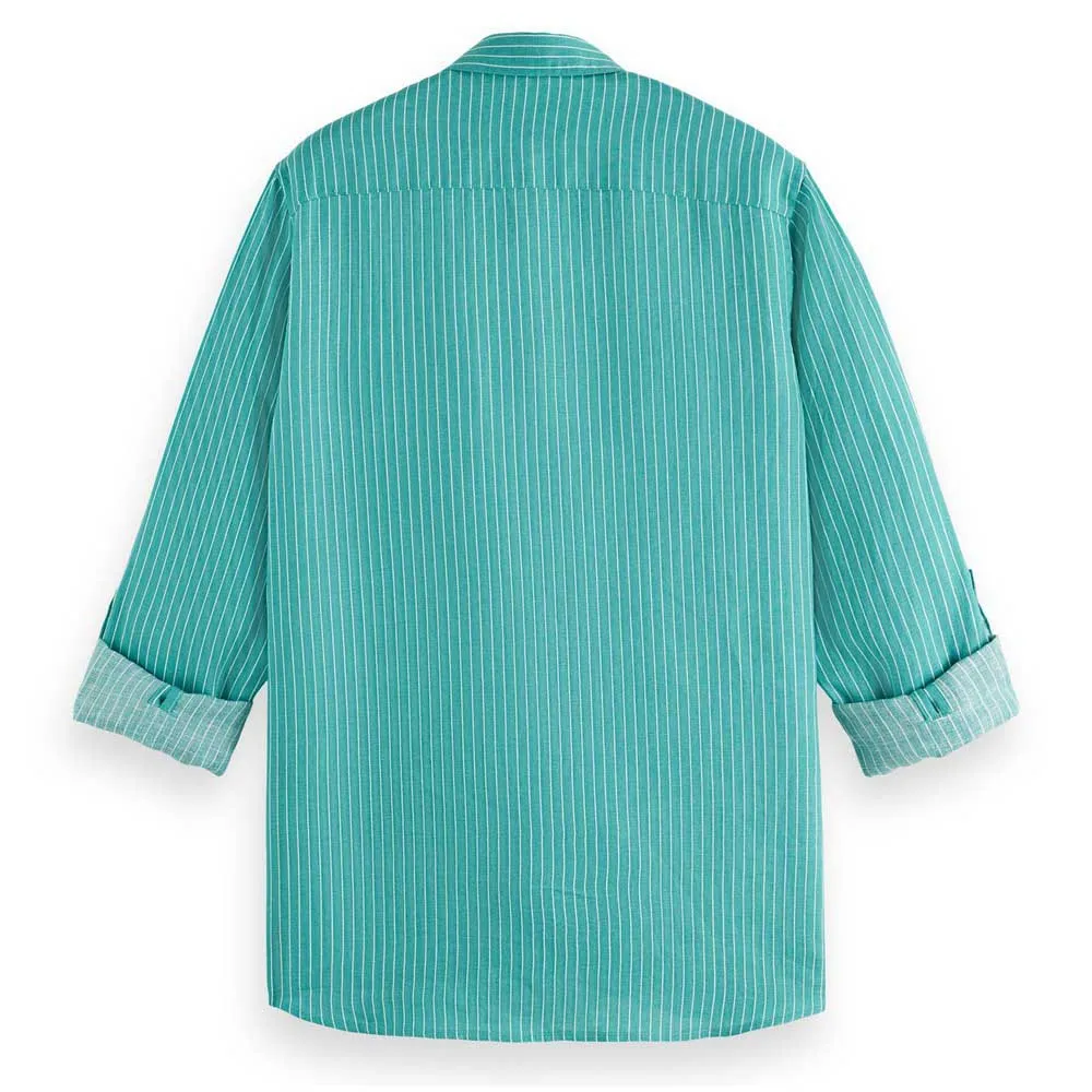 Ощутите максимальный комфорт и стиль с этой незаменимой льняной рубашкой. Льняная рубашка с длинным рукавом SCOTCH & SODA Regular Fit Striped — универсальное и стильное дополнение к гардеробу любого мужчины. Дышащая льняная конструкция, классический полосатый дизайн и удобный классический крой делают ее идеальным выбором для любого случая. Наслаждайтесь роскошным ощущением высококачественного льна на вашей коже, сохраняя прохладу и комфорт в течение всего дня. Эта рубашка — настоящее воплощение непринужденного стиля и изысканности.