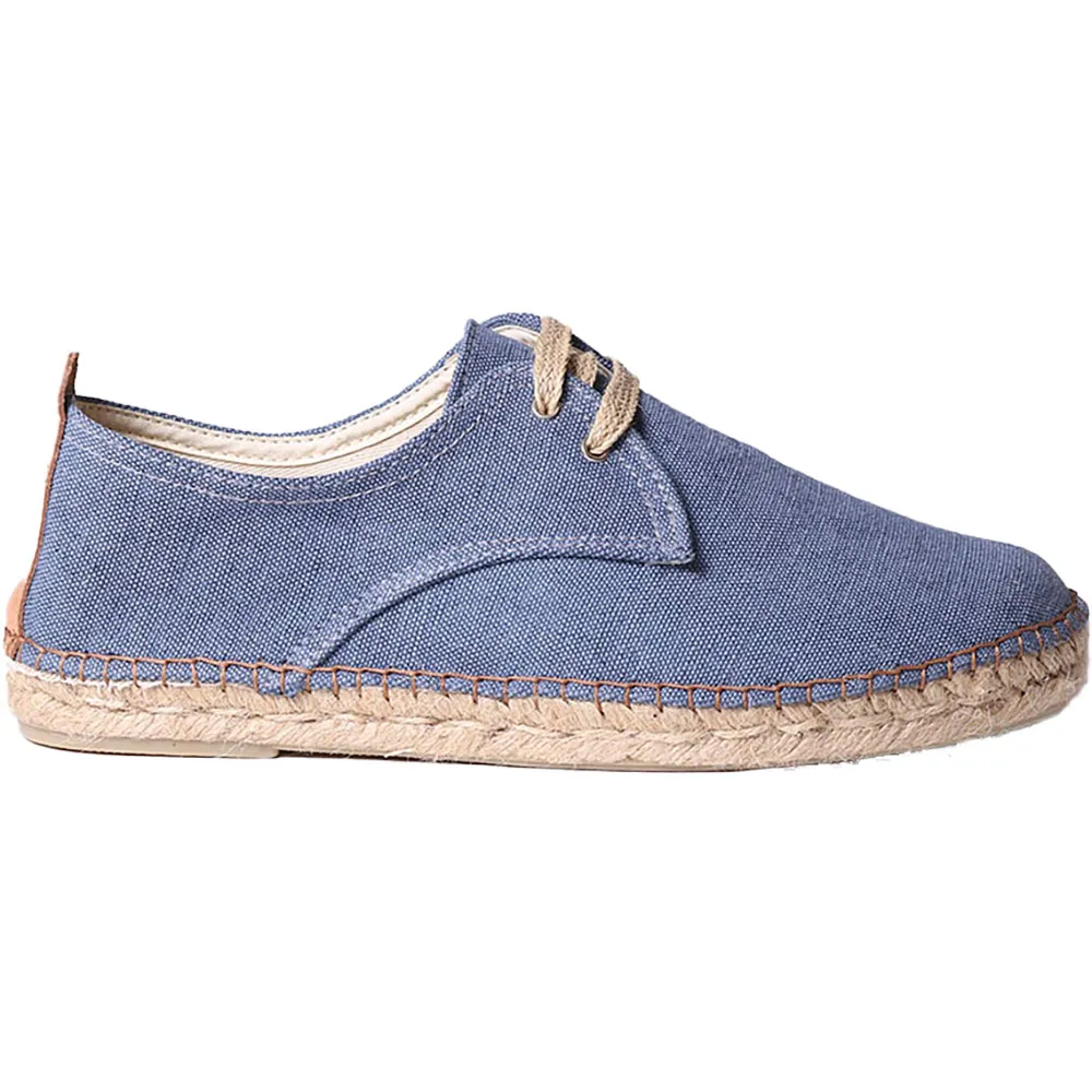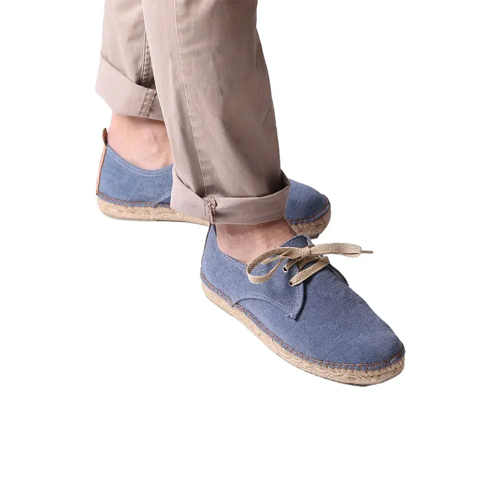 Эта мужская эспадрилья на шнуровке изготовлена из хлопчатобумажной и джутовой ткани.