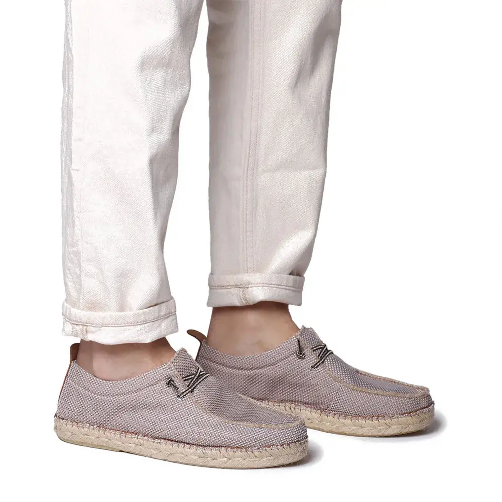 Мужские эспадрильи на джутовой подошве со шнурками изготовлены из сетчатой ткани.