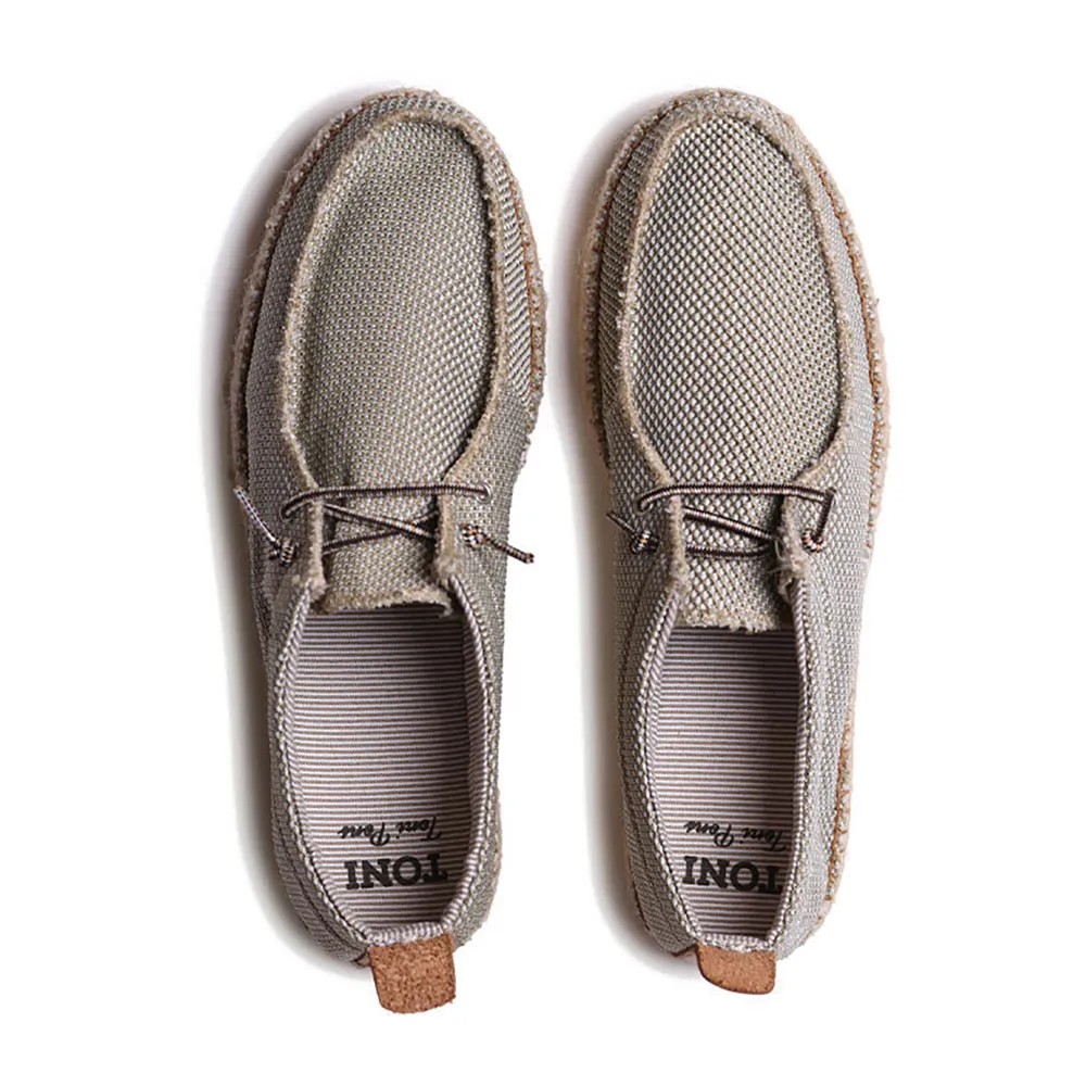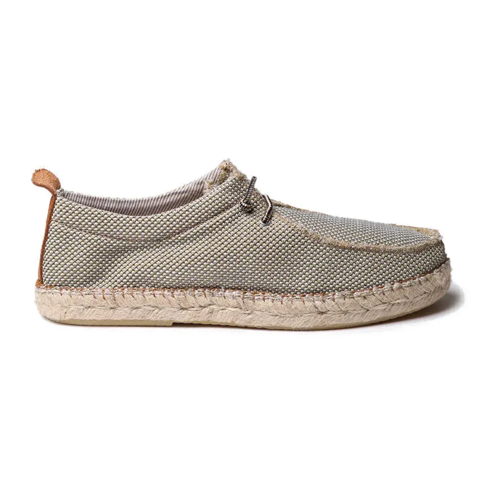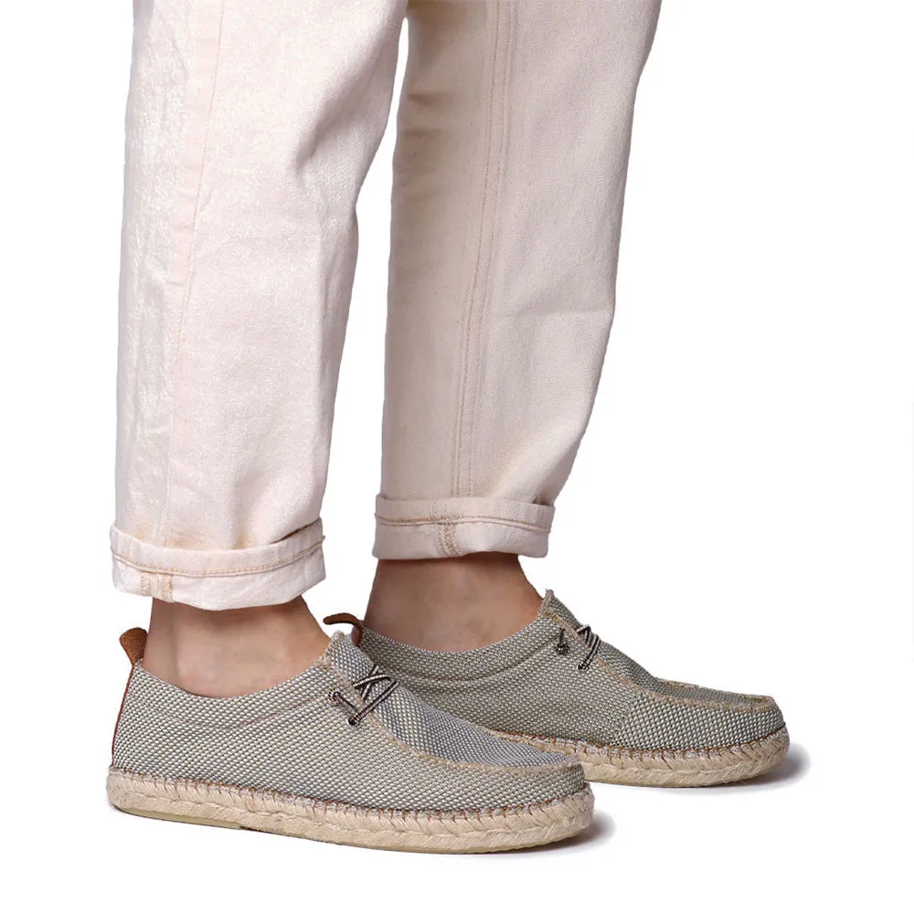 Мужские эспадрильи на джутовой подошве со шнурками изготовлены из сетчатой ткани.