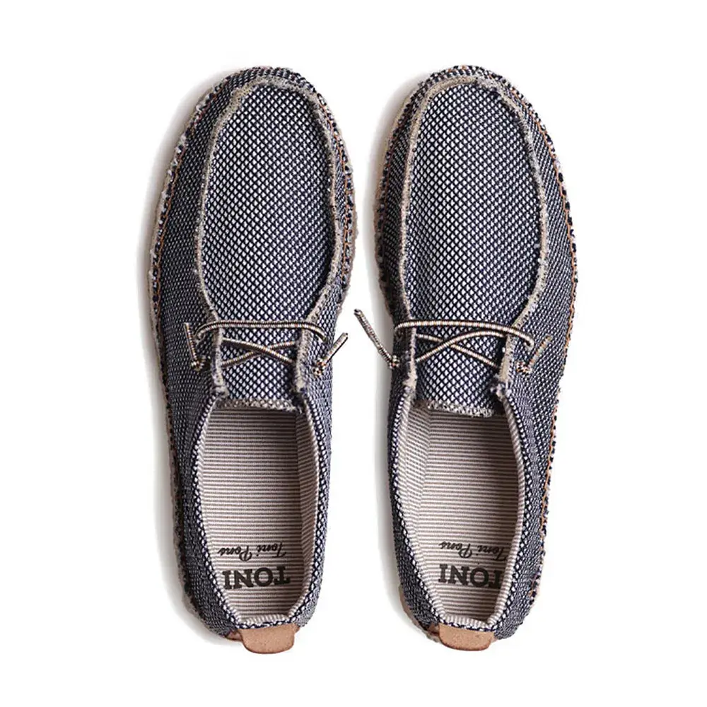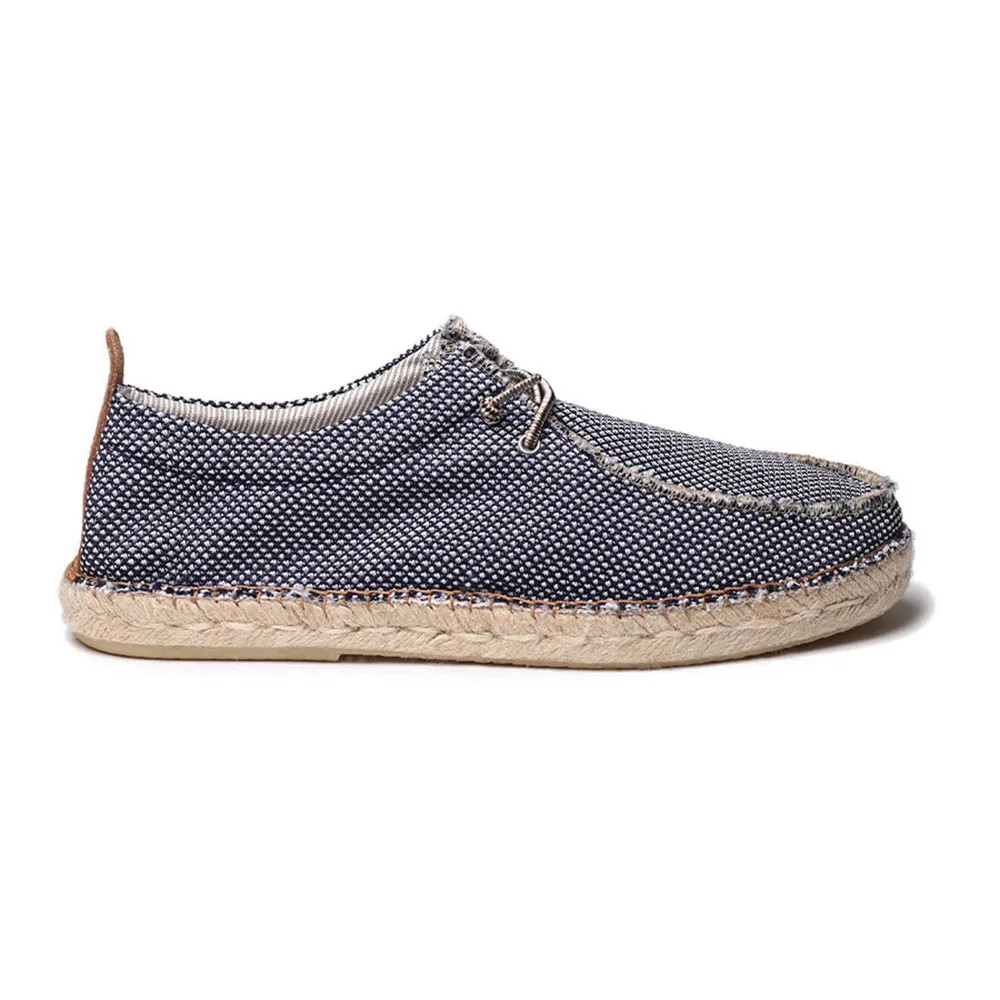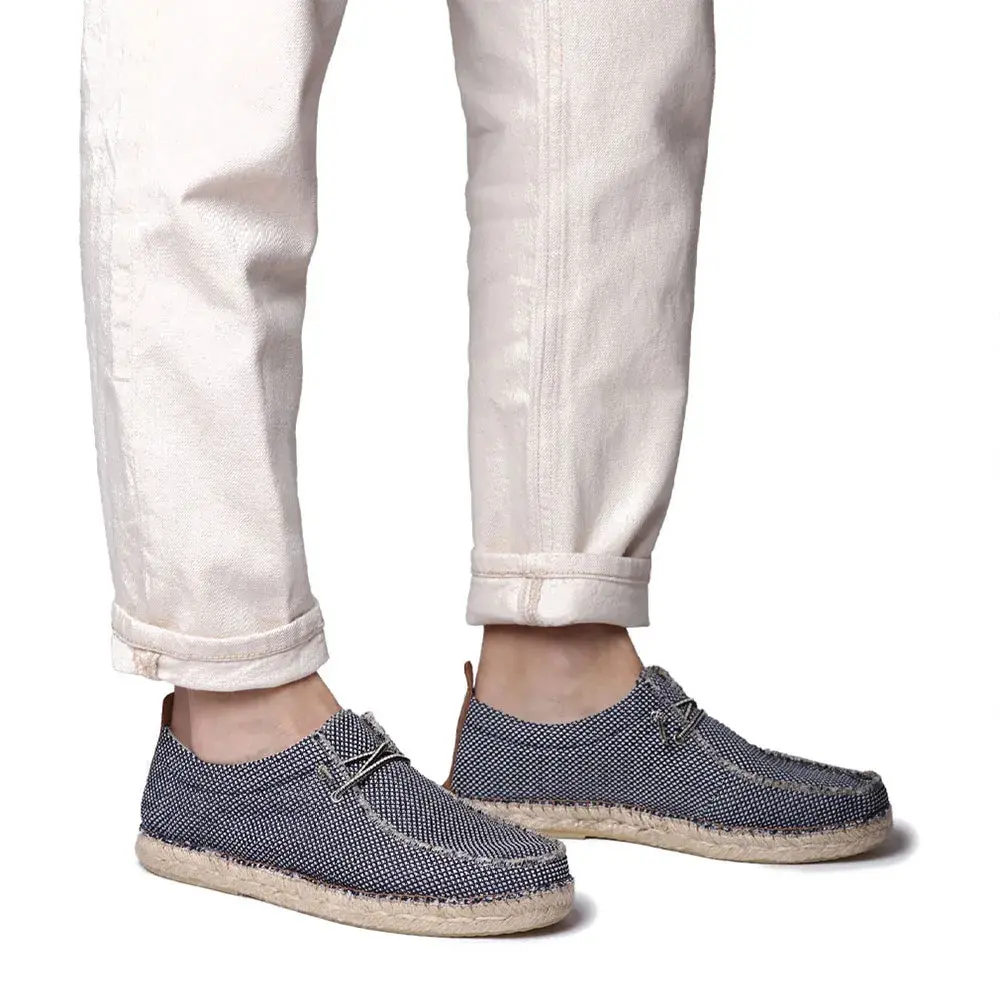 Мужские эспадрильи на джутовой подошве со шнурками изготовлены из сетчатой ткани.