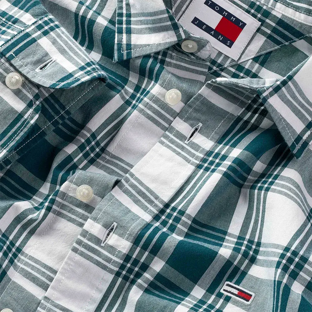 Эта рубашка классического кроя выполнена из хлопкового поплина, растягивающегося в четырех направлениях, с клетчатым рисунком по всей поверхности. Особенности: - Эластичный хлопок, - клетчатый рисунок по всей поверхности, - отложной воротник на пуговицах, - Закругленные манжеты на пуговицах, - Отличительные детали Tommy Jeans, - Вышитый логотип Tommy Jeans на груди. Размер и крой: - Классический крой.