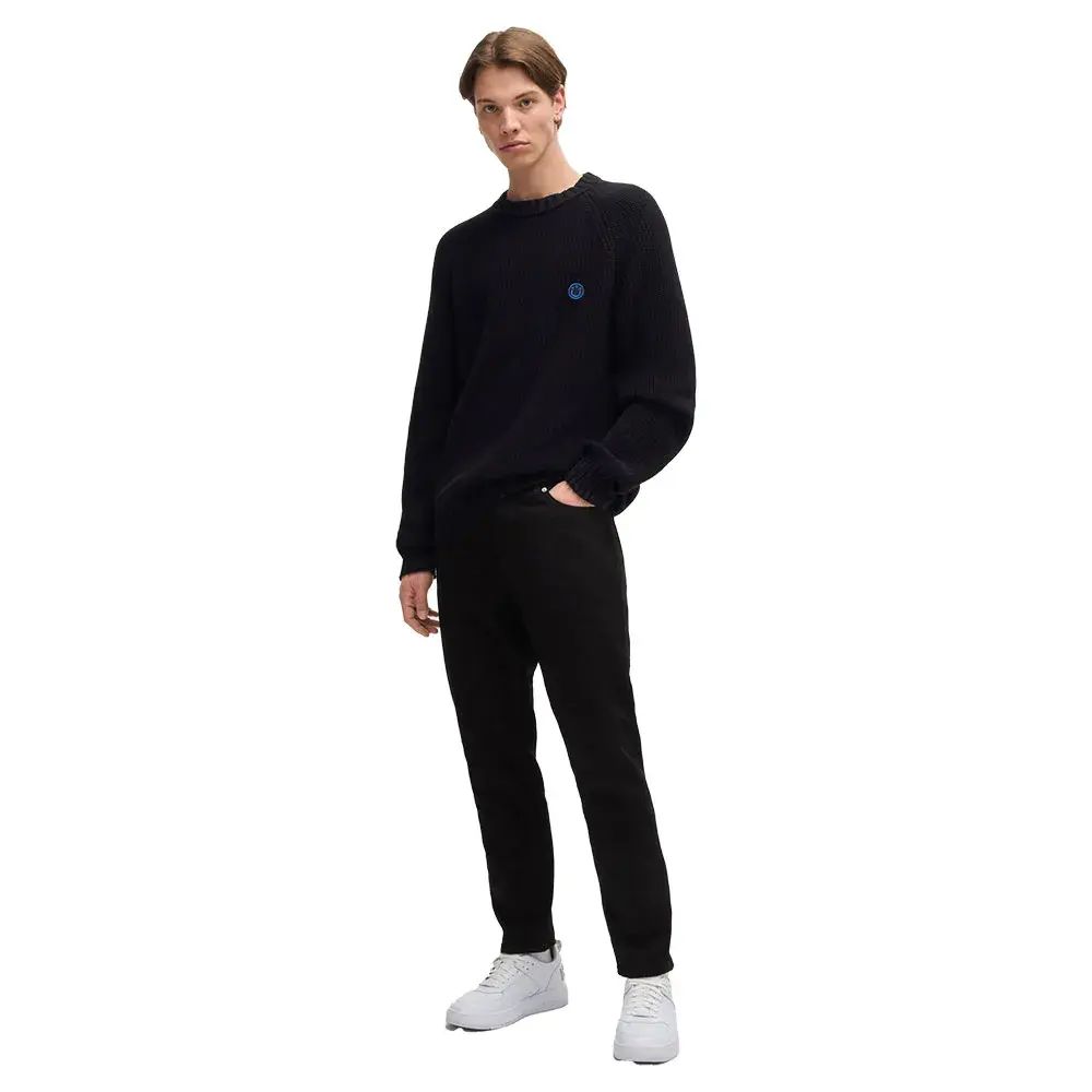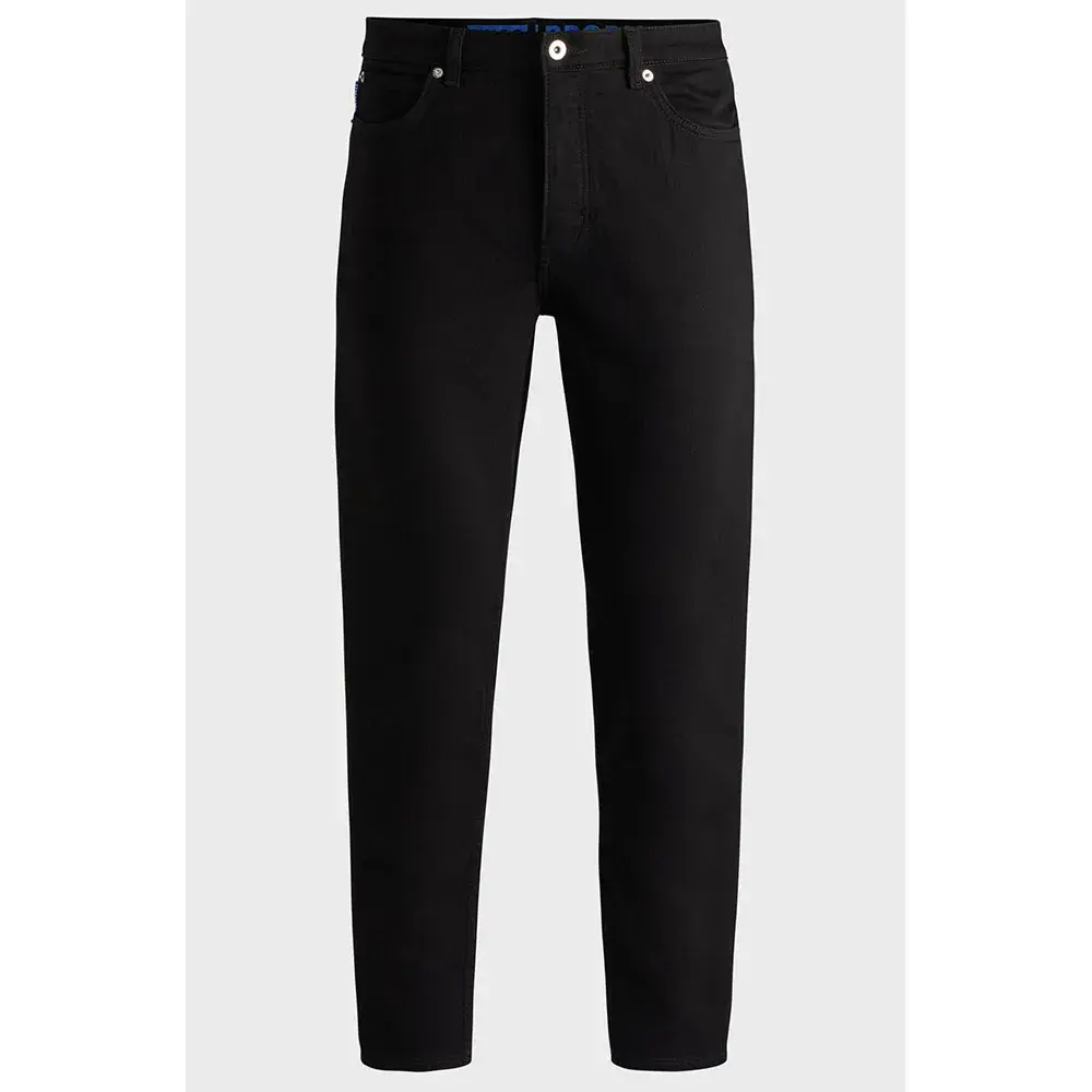Джинсы HUGO Menswear из эластичного денима для свободы движений. Эта пара с классической посадкой зауженного кроя дополнена фирменной отделкой.