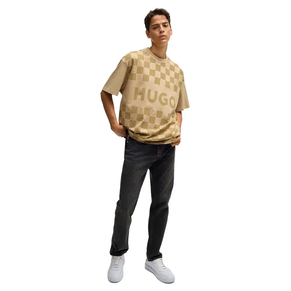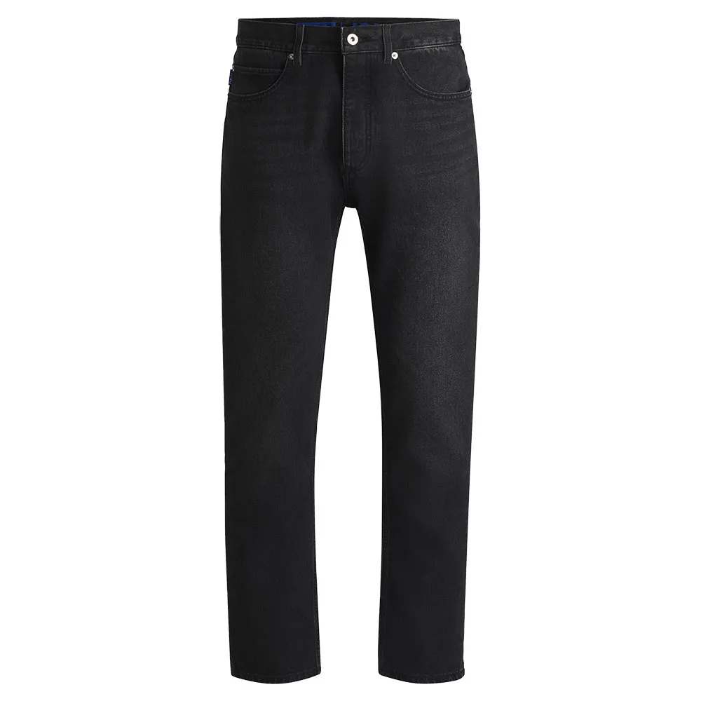 Универсальные джинсы от HUGO Menswear. Эта пара прямого кроя с обычной талией выполнена из плотного хлопкового денима темно-серого цвета.