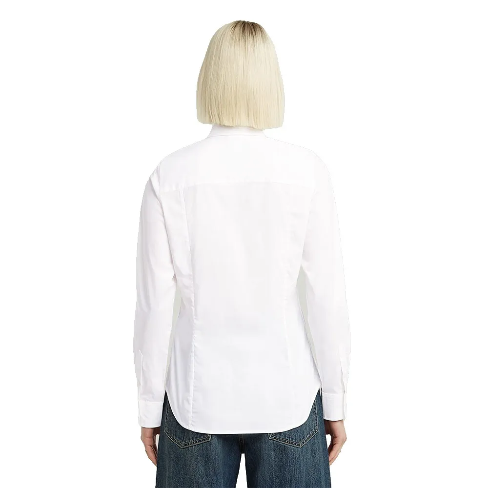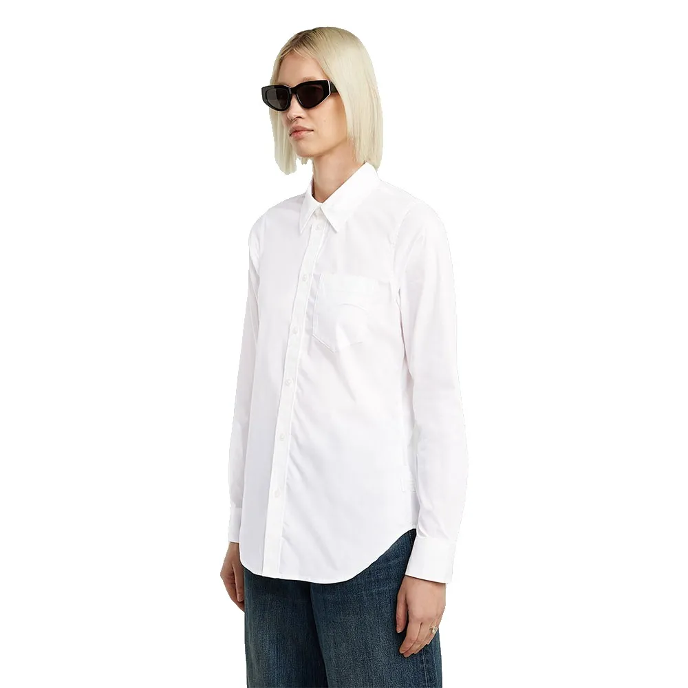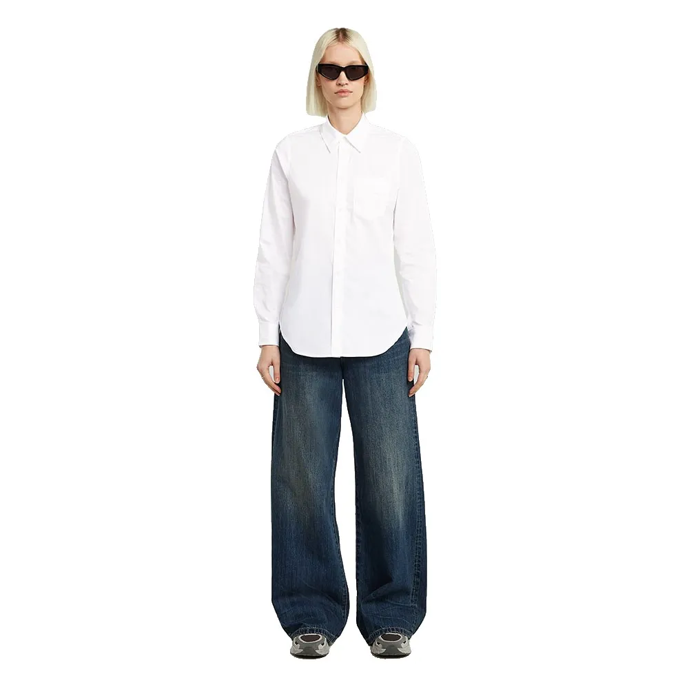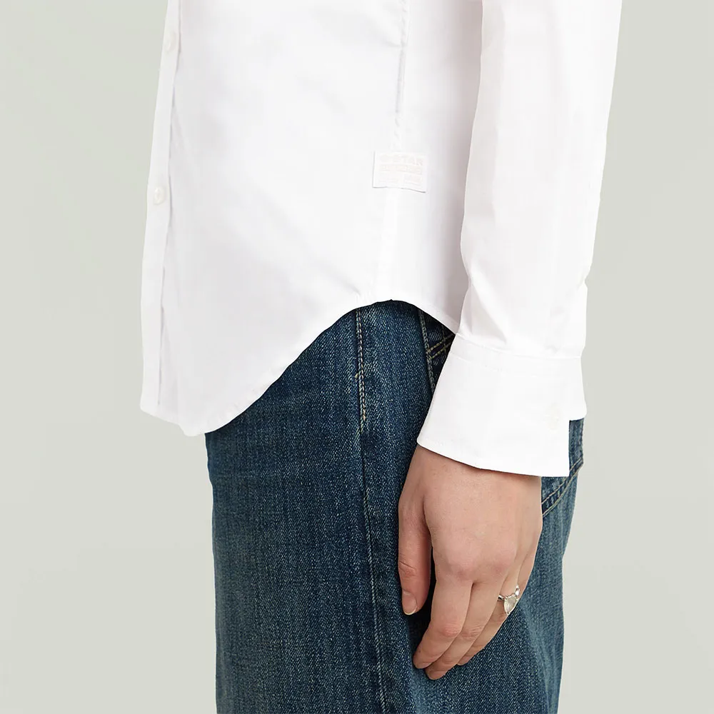 Укороченная рубашка из поплина с длинным рукавом застегивается на пуговицы и имеет рубашечный воротник.
