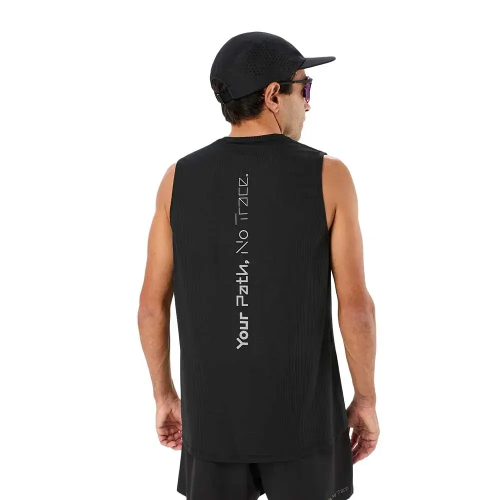 Наша майка Race Tank черного цвета теперь на 90% изготовлена из переработанных материалов и обеспечивает непревзойденную воздухопроницаемость и невероятную легкость.
