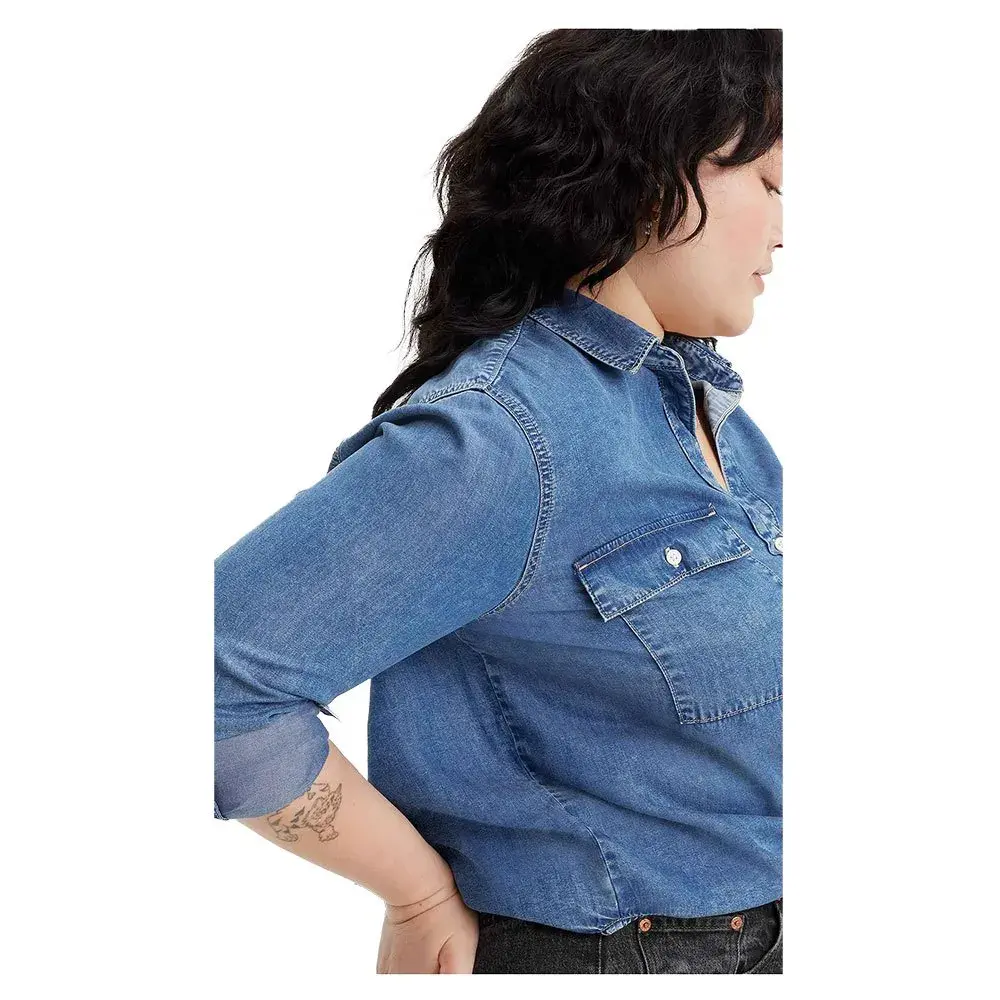 Наша практичная рубашка Doreen, вдохновленная классической рабочей одеждой, отличается классическим передом на пуговицах, двумя большими накладными карманами и длинными рукавами, которые можно носить закатанными или опущенными.