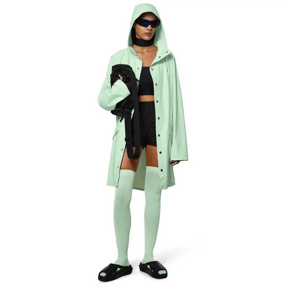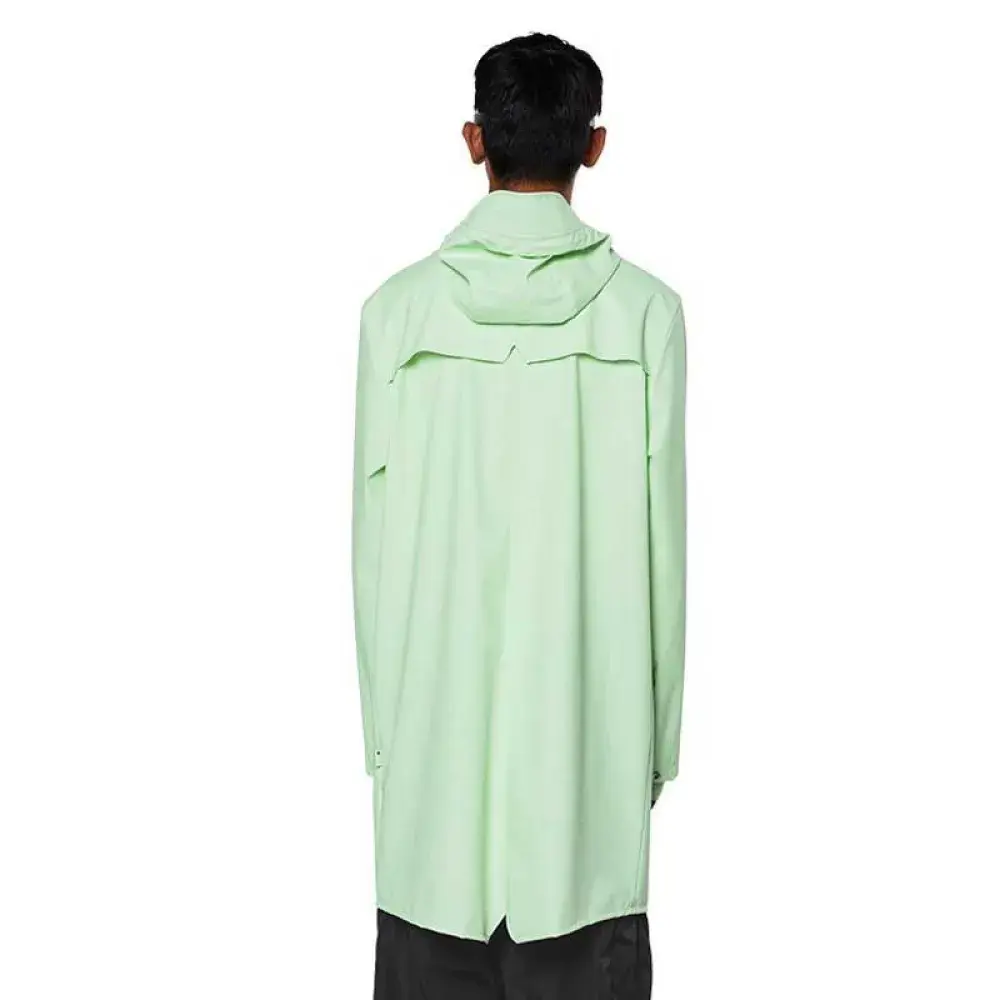 Long Jacket — это всегда актуальная унисекс-дождевик. Отличается минималистичным силуэтом и удлиненной конструкцией. Эта куртка — удлиненная версия классической дождевика Rains. Она оснащена планкой с застежкой на кнопках, капюшоном со встроенным козырьком и двумя боковыми карманами на кнопках. Рукава застегиваются на кнопки, что позволяет регулировать посадку: свободную или плотную.