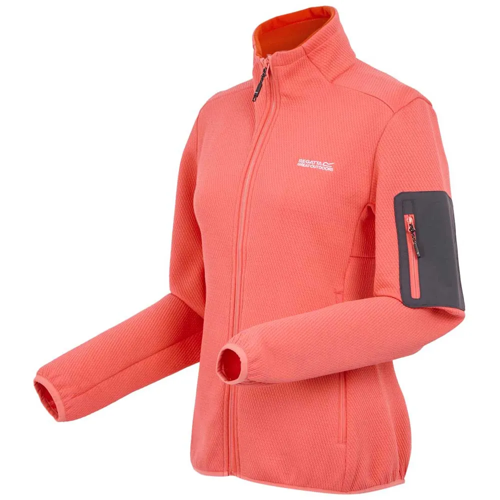Удобный и практичный женский топ Aldean на молнии по всей длине станет идеальным вариантом для активного отдыха на природе. Изготовленный из высококачественной полиэстеровой жаккардовой ткани, этот джемпер на молнии не только обеспечит вам комфорт и безопасность, но и станет стильным дополнением к вашему образу. Благодаря нашей технологии Reach, он имеет ластовицу под мышками, которая обеспечивает максимальную свободу движений и свободный подъем руки. Практичность превыше всего: два нижних кармана на молнии и один карман на рукаве на молнии обеспечивают вместительное и надежное хранение необходимых вещей. Эластичная резинка на манжетах обеспечивает плотное прилегание, повышая общий комфорт и защищая от непогоды.