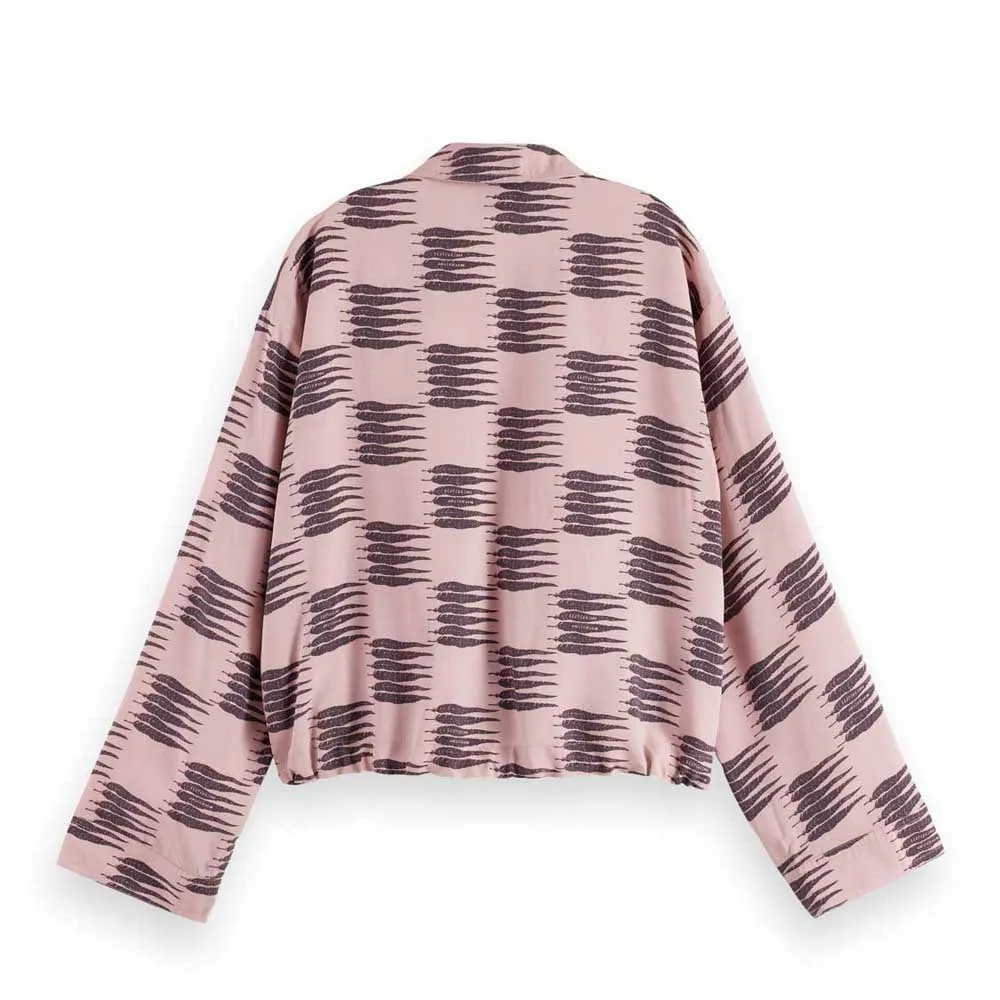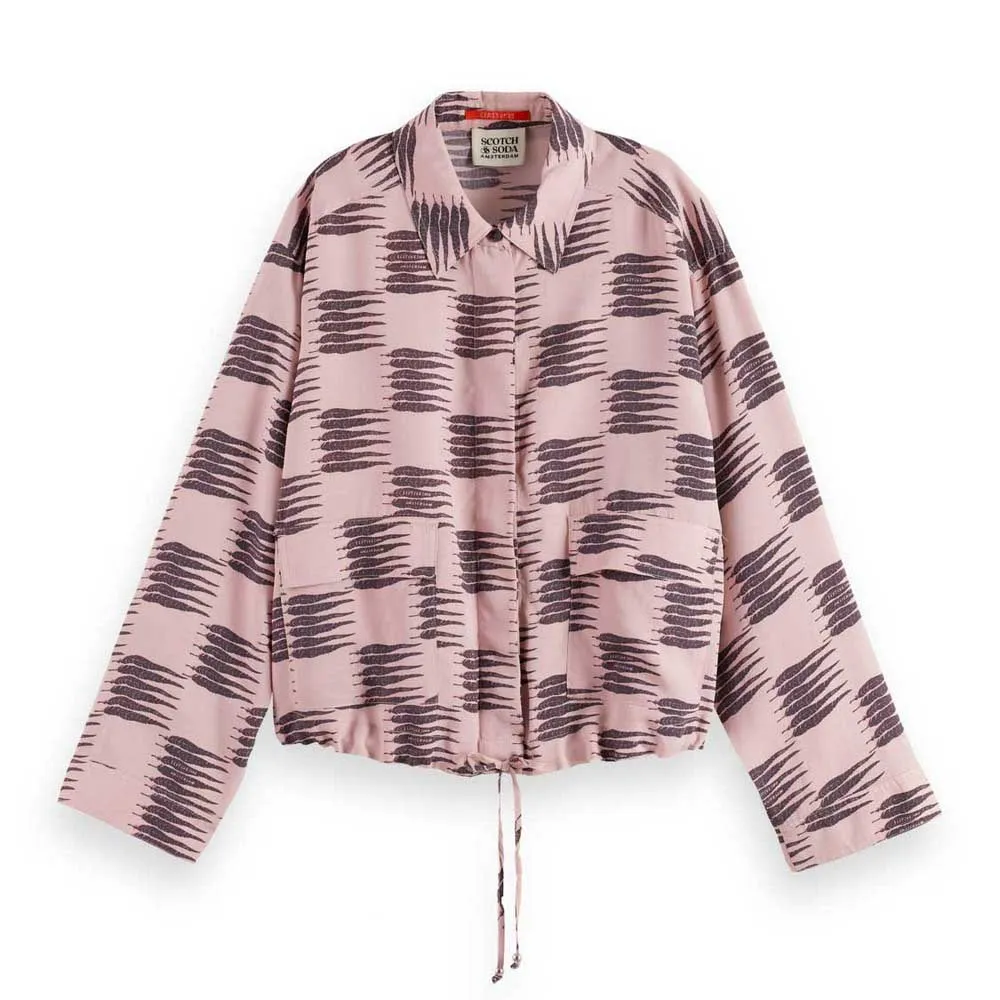 Эта рубашка с принтом, сочетающая в себе утилитарные формы и свежие летние стили, присборена на талии для повседневной носки.