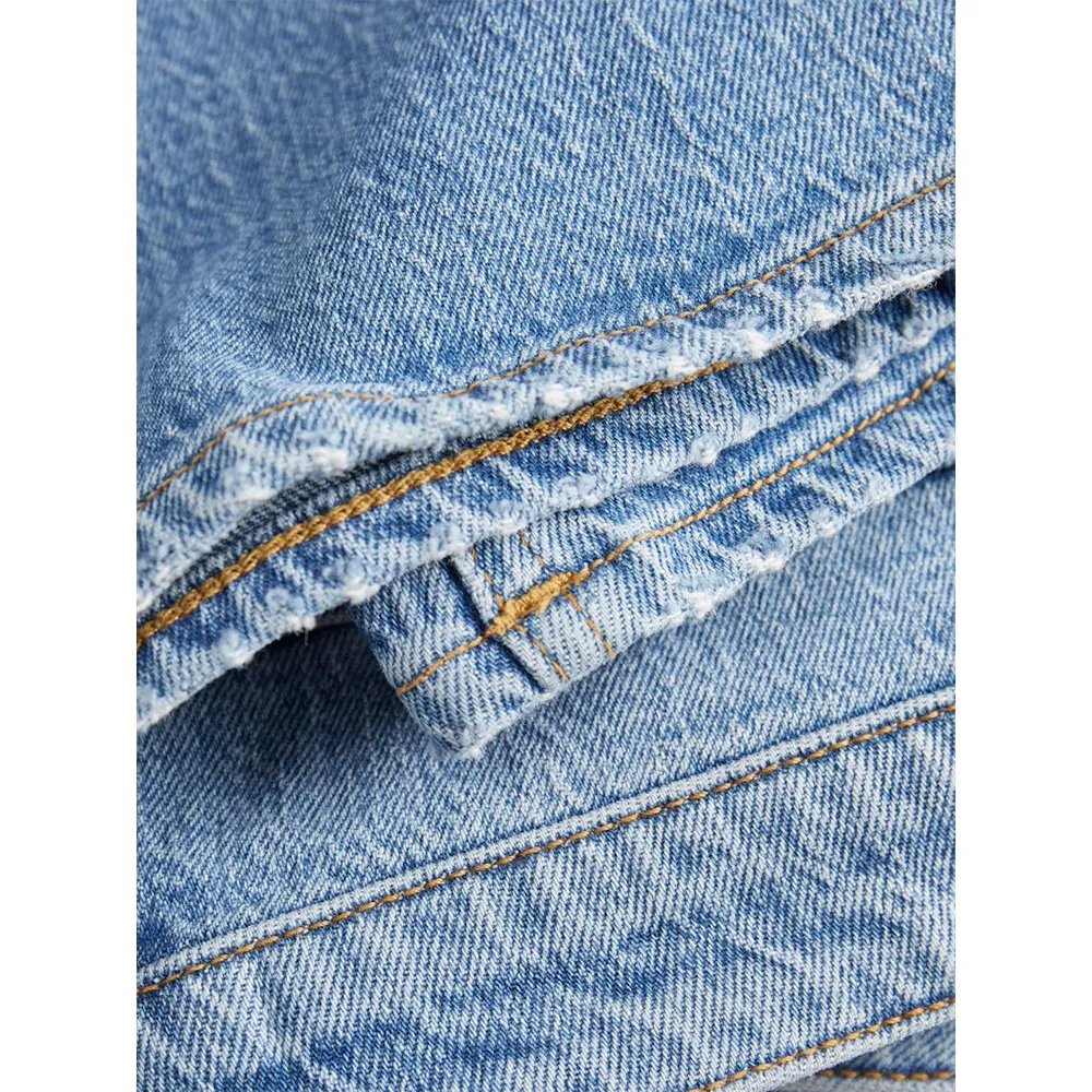 Джинсовая ткань — это прочная саржевая ткань, характеризующаяся переплетением окрашенных нитей основы и утка.