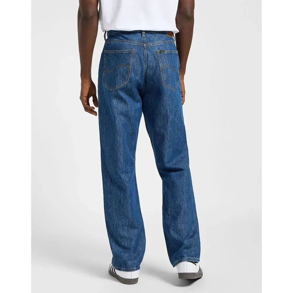 нашивка Lee сзади, пуговицы с логотипом, S-образная строчка и крестообразные закрепки.