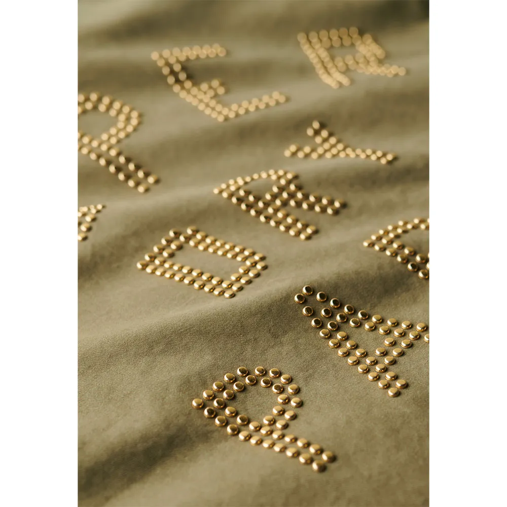 Вышитый шевронный принт на рукаве с декорированным текстом на спине.