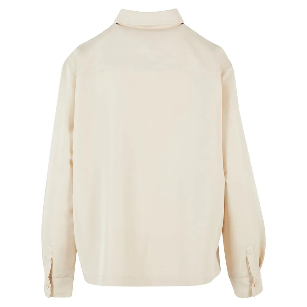 Женская блузка с длинными рукавами отлично сидит на фигуре благодаря своей абсолютной непринужденности. Классический воротник и планка на пуговицах, а также небольшие разрезы по бокам. Городской образ достигается благодаря двум накладным нагрудным карманам и свободному крою oversize со спущенными плечами. Кокетка на спинке также оптимизирует посадку женской блузки. Изготовлена из твила.